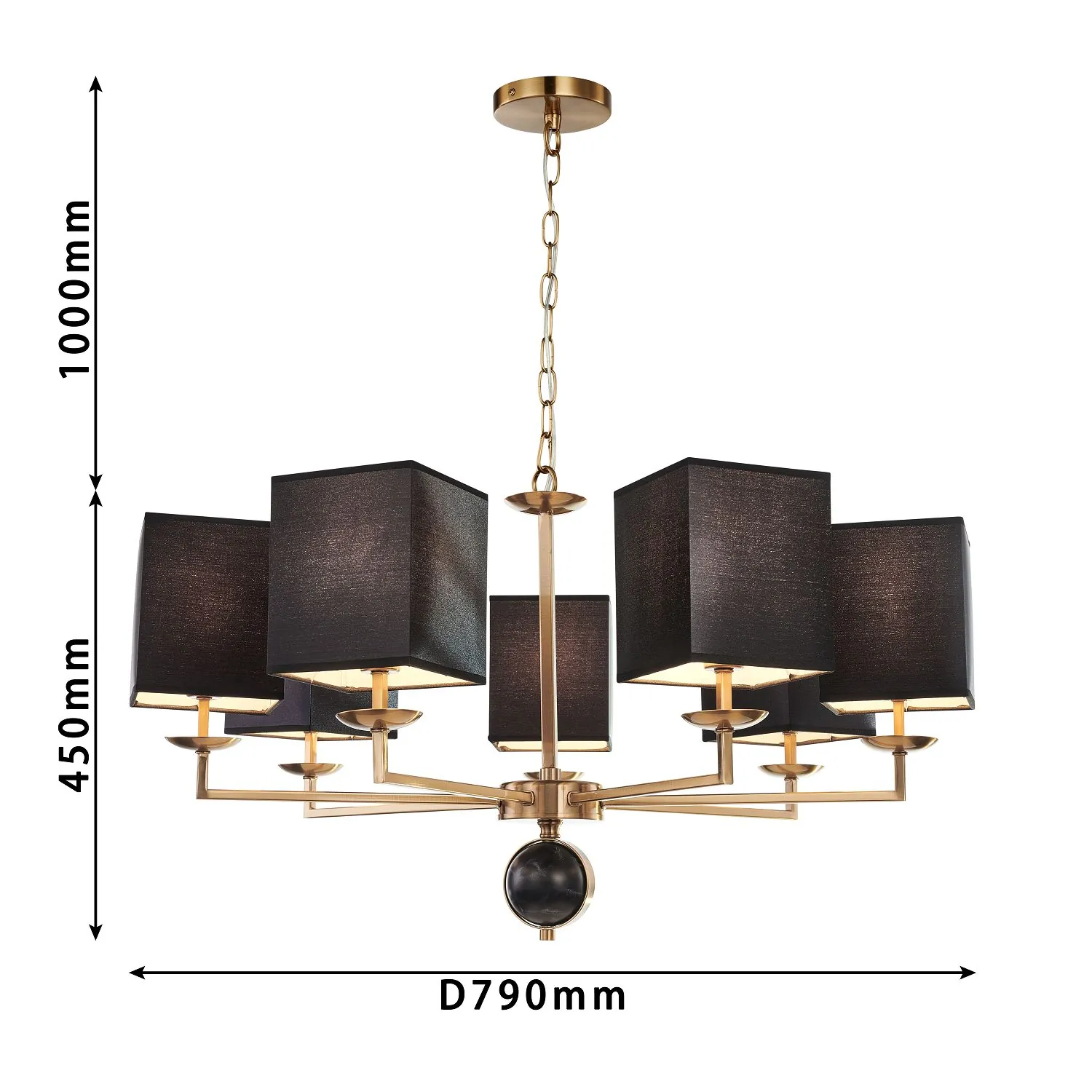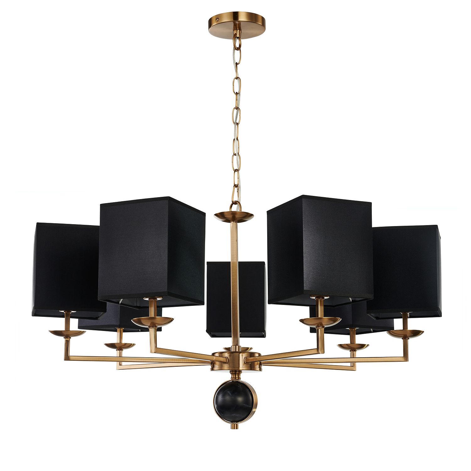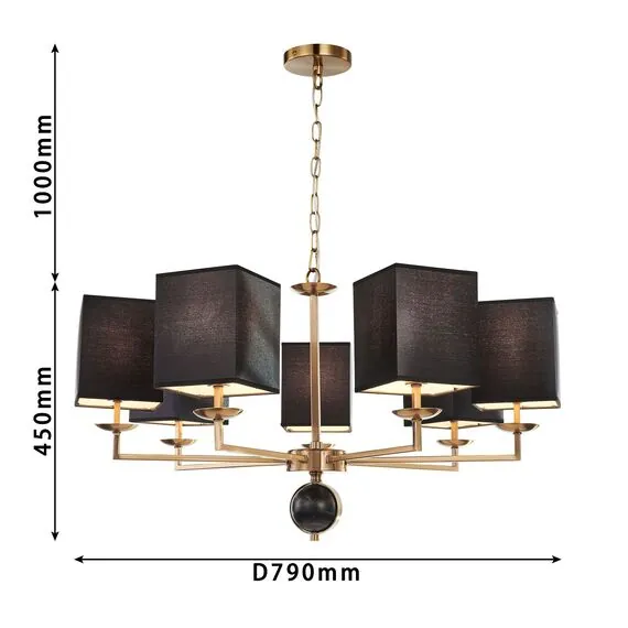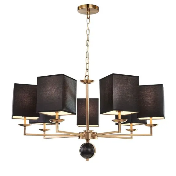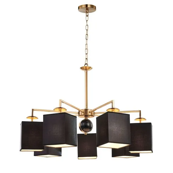 Артикул: 2822-7P; Бренд: Favourite; Коллекция: Diva; Стиль: Classic; Назначение: гостиная; спальня; кухня; детская; холл; кафе; ресторан; кабинет; столовая; студия; Тип светильника: подвесная люстра; Тип крепления: планка; Степень защиты: IP20; Площадь освещения, м2: 14; Напряжение питания, V: 220; Натяжные потолки: Да; Тип ламп: 7*E14*40W, excluded; Общая мощность, W: 280; Материал: металл, ткань; Материал каркаса: металл, Металл; Материал плафона: ткань, Ткань; Цвет каркаса: латунь, Латунь; Цвет плафона: черный, Черный, чёрный, Чёрный; Диммирование: нет; Наличие пульта: Нет; Гарантия, мес: 36; min высота: 455; max высота: 1625; Диаметр, мм: 790; Высота потолочной чаши, мм: 20; Диаметр потолочной чаши, мм: 120; Высота плафона, мм: 160; Вес, кг: 4.5; Вес упаковки, кг: 5.2; Длина упаковки, см: 78; Ширина упаковки, см: 24; Высота упаковки, см: 76; Штрихкод: 4035726143232