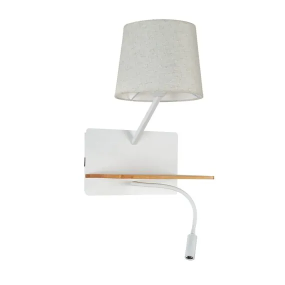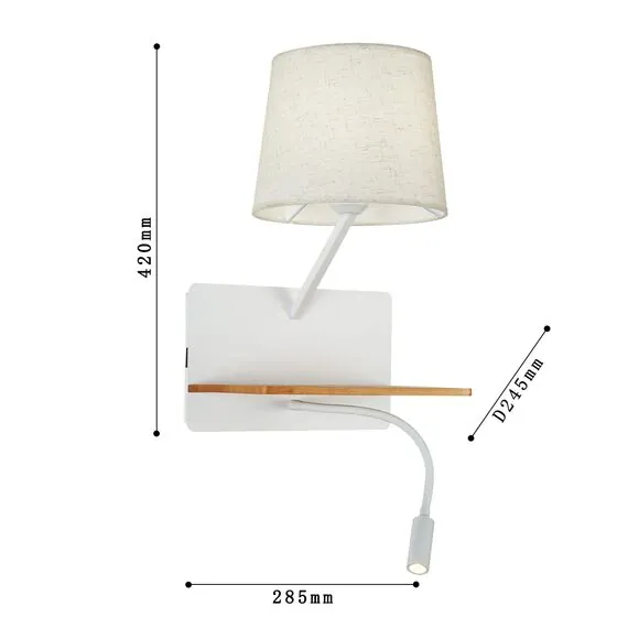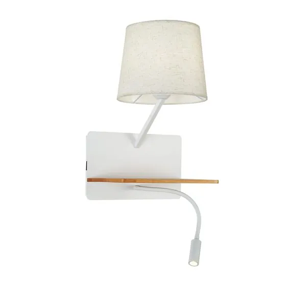 Артикул: 2895-1W; Бренд: Favourite; Коллекция: Liga; Стиль: Modern; Назначение: гостиная; спальня; кухня; детская; холл; кафе; ресторан; кабинет; столовая; студия; Тип светильника: Бра; Тип крепления: планка; Степень защиты: IP20; Площадь освещения, м2: 3; Напряжение питания, V: 220; Натяжные потолки: Нет; Тип ламп: 1*E27*40W, excluded + 1*LED*2W, 160LM, 3000K, included, switch, USB; Общая мощность, W: 42; Max цветовая температура, К: 3000; Материал: металл, дерево, ткань; Материал каркаса: металл, Металл; Материал плафона: ткань, Ткань; Цвет каркаса: белый, Белый; Цвет плафона: белый, Белый; Диммирование: нет; Наличие пульта: Нет; Гарантия, мес: 36; Ширина, мм: 285; min высота: 420; max высота: 420; Глубина, мм: 245; Высота плафона, мм: 175; Вес, кг: 2; Вес упаковки, кг: 2.2; Длина упаковки, см: 30; Ширина упаковки, см: 30; Высота упаковки, см: 23; Штрихкод: 4035726144734