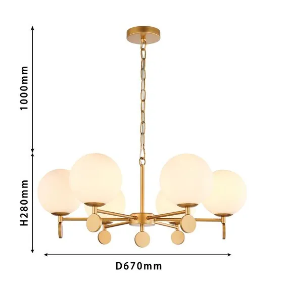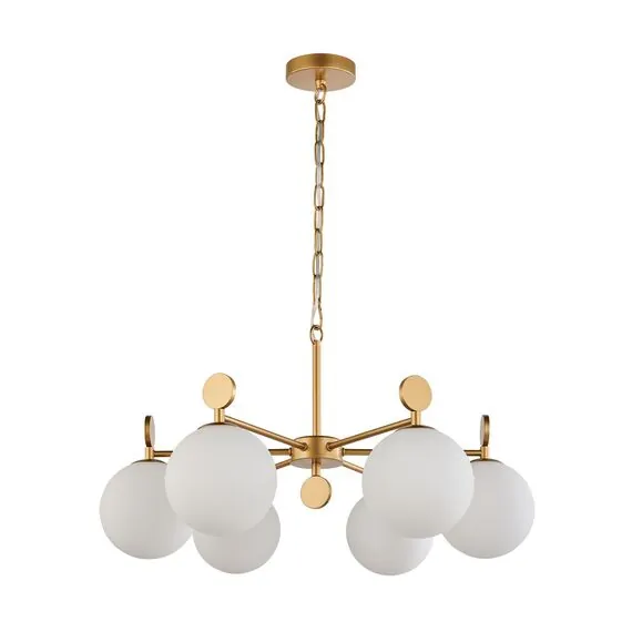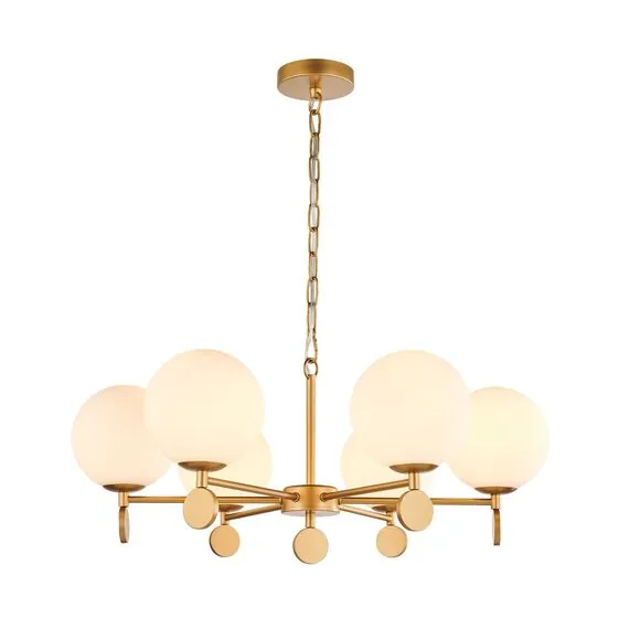 Артикул: 2928-6P; Бренд: Favourite; Коллекция: Absolute; Стиль: Classic; Назначение: гостиная; спальня; кухня; детская; холл; кафе; ресторан; кабинет; столовая; студия; Тип светильника: подвесная люстра; Тип крепления: планка; Степень защиты: IP20; Площадь освещения, м2: 12; Напряжение питания, V: 220; Натяжные потолки: Да; Тип ламп: 6*E14*40W, excluded; Общая мощность, W: 240; Материал: Металл, Стекло; Материал каркаса: металл, Металл; Материал плафона: стекло, Стекло; Цвет каркаса: золотой, Золотой; Цвет плафона: опал; Диммирование: нет; Наличие пульта: Нет; Гарантия, мес: 36; min высота: 280; max высота: 1450; Диаметр, мм: 670; Высота потолочной чаши, мм: 25; Диаметр потолочной чаши, мм: 120; Высота плафона, мм: 279; Вес, кг: 3.6; Вес упаковки, кг: 5; Длина упаковки, см: 63; Ширина упаковки, см: 22; Высота упаковки, см: 66; Штрихкод: 4035726145496