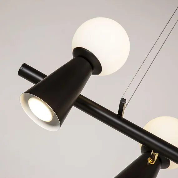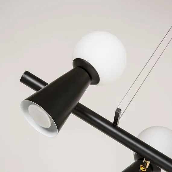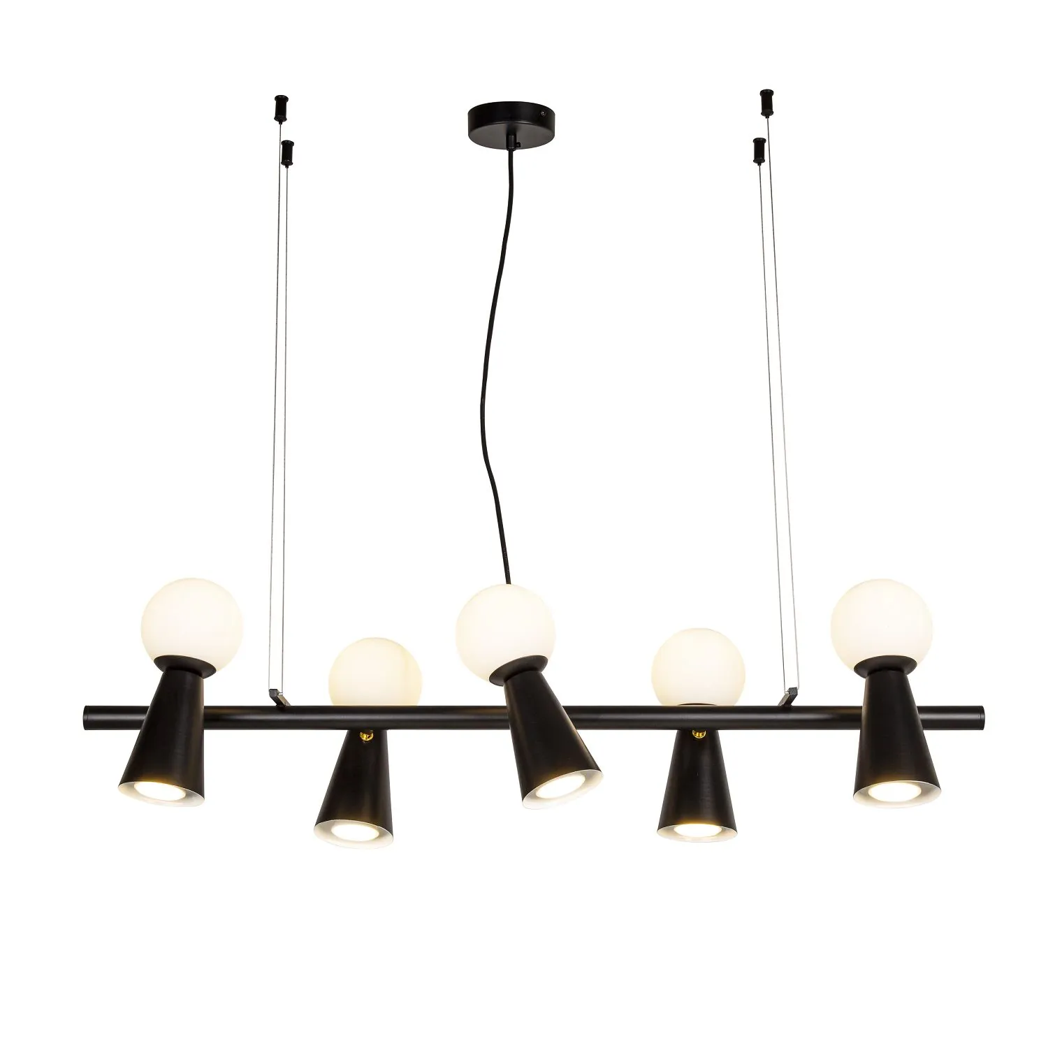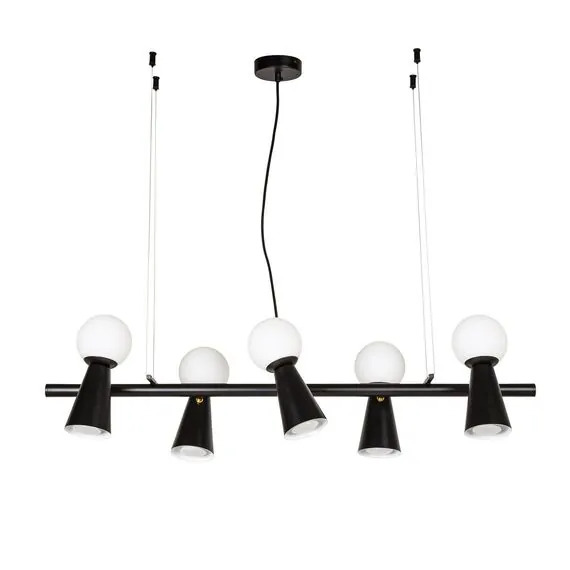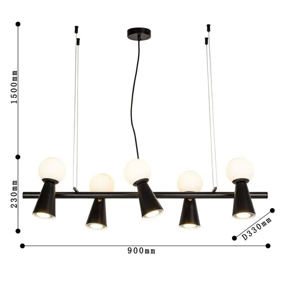 Артикул: 4095-5P; Бренд: Favourite; Коллекция: Gnomes; Стиль: Modern; Назначение: гостиная; спальня; кухня; детская; холл; кафе; ресторан; кабинет; столовая; студия; Тип светильника: подвесная люстра; Тип крепления: планка; Площадь освещения, м2: 15; Тип ламп: 5*G9LED*3W + 5*GU10*35W, excluded; Общая мощность, W: 38; Материал: Металл; Материал плафона: белое стекло; Цвет каркаса: черный, Черный, Чёрный, чёрный; Длина, мм: 900; Ширина, мм: 330; min высота: 230; max высота: 1730; Диаметр потолочной чаши, мм: D100*H25; Вес, кг: 2.8; Вес упаковки, кг: 3.8; Длина упаковки, см: 91; Ширина упаковки, см: 33; Высота упаковки, см: 12; Штрихкод: 4035726151053