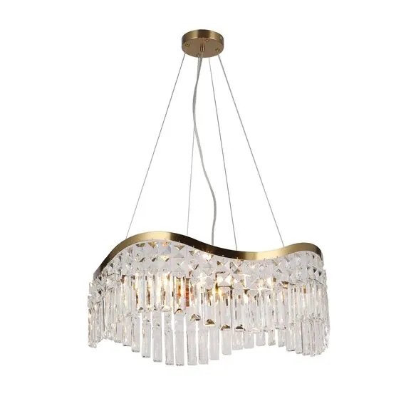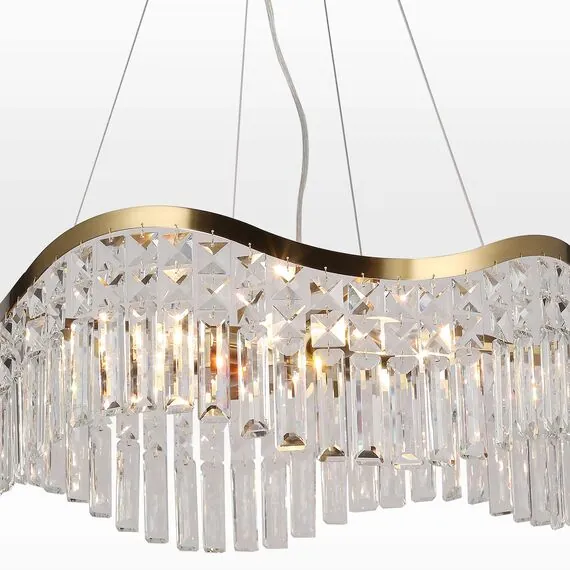 Артикул: 4135-8P; Бренд: Favourite; Коллекция: Unda; Стиль: Crystal; Назначение: гостиная; спальня; кухня; детская; холл; кафе; ресторан; кабинет; столовая; студия; Тип светильника: подвесная люстра; Тип крепления: планка; Степень защиты: IP20; Площадь освещения, м2: 28; Напряжение питания, V: 220; Натяжные потолки: Да; Тип ламп: 8*E14*60W, excluded; Общая мощность, W: 480; Материал: металл, хрусталь; Материал каркаса: металл, Металл; Материал плафона: хрусталь, Хрусталь; Цвет каркаса: золотой, Золотой; Цвет плафона: прозрачный, Прозрачный; Диммирование: нет; Наличие пульта: Нет; Гарантия, мес: 36; Длина, мм: 600; min высота: 215; max высота: 1200; Высота потолочной чаши, мм: 25; Диаметр потолочной чаши, мм: 120; Высота плафона, мм: 215; Вес, кг: 7; Вес упаковки, кг: 7.9; Длина упаковки, см: 64; Ширина упаковки, см: 64; Высота упаковки, см: 17; Штрихкод: 4035726151824