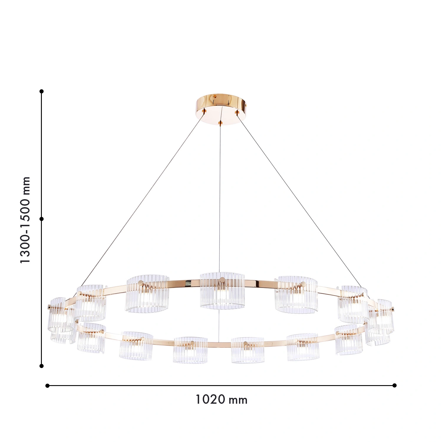 Артикул: 4248-15P; Бренд: Favourite; Коллекция: Ori; Стиль: Modern; Назначение: гостиная; спальня; кухня; детская; холл; кафе; ресторан; кабинет; столовая; студия; Тип светильника: подвесная люстра; Тип крепления: планка; Степень защиты: IP20; Площадь освещения, м2: 6; Напряжение питания, V: 220; Натяжные потолки: Да; Тип ламп: 15*LED*4.6W, 1800LM, 4000K, included; Общая мощность, W: 69; Max цветовая температура, К: 4000; Материал: Металл, Стекло; Материал каркаса: металл, Металл; Материал плафона: стекло, Стекло; Цвет каркаса: золотой, Золотой; Цвет плафона: прозрачный, Прозрачный; Диммирование: нет; Наличие пульта: Нет; Гарантия, мес: 36; min высота: 1300; max высота: 1500; Диаметр, мм: 1020; Вес, кг: 8.9; Вес упаковки, кг: 10.8; Длина упаковки, см: 100; Ширина упаковки, см: 100; Высота упаковки, см: 15; Штрихкод: 4035726154290