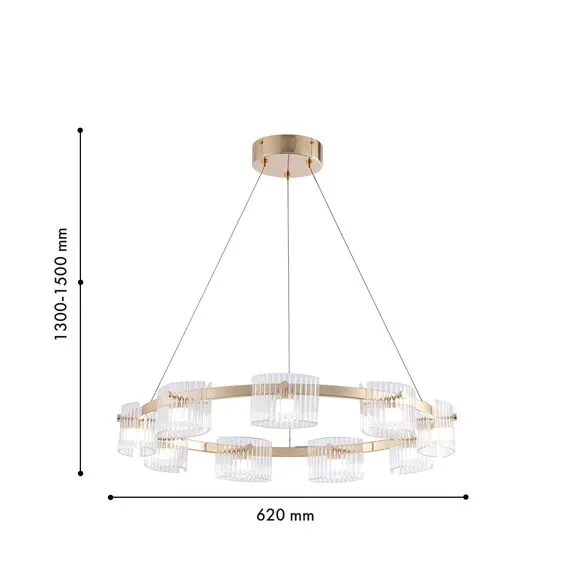 Артикул: 4248-9P; Бренд: Favourite; Коллекция: Ori; Стиль: Modern; Назначение: гостиная; спальня; кухня; детская; холл; кафе; ресторан; кабинет; столовая; студия; Тип светильника: подвесная люстра; Тип крепления: планка; Степень защиты: IP20; Площадь освещения, м2: 4; Напряжение питания, V: 220; Натяжные потолки: Да; Тип ламп: 9*LED*5.5W, 1080LM, 4000K, included; Общая мощность, W: 49.5; Max цветовая температура, К: 4000; Материал: Металл, Стекло; Материал каркаса: металл, Металл; Материал плафона: стекло, Стекло; Цвет каркаса: золотой, Золотой; Цвет плафона: прозрачный, Прозрачный; Диммирование: нет; Наличие пульта: Нет; Гарантия, мес: 36; min высота: 1300; max высота: 1500; Диаметр, мм: 620; Вес, кг: 5.5; Вес упаковки, кг: 6.8; Длина упаковки, см: 60; Ширина упаковки, см: 60; Высота упаковки, см: 15; Штрихкод: 4035726154276