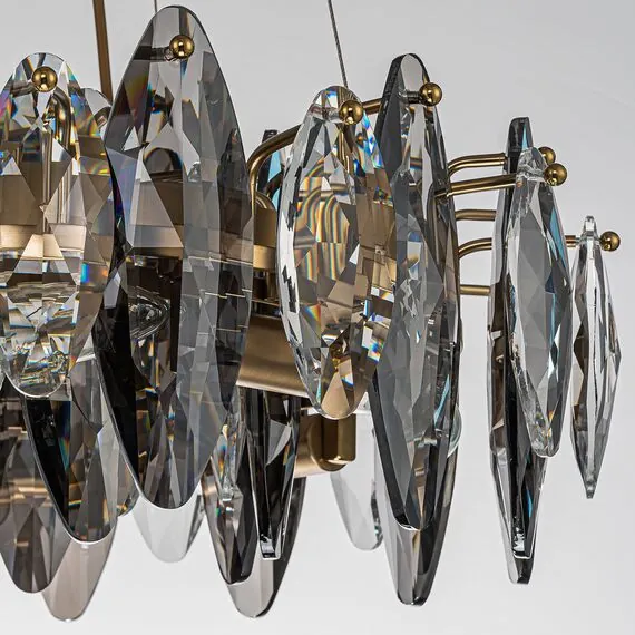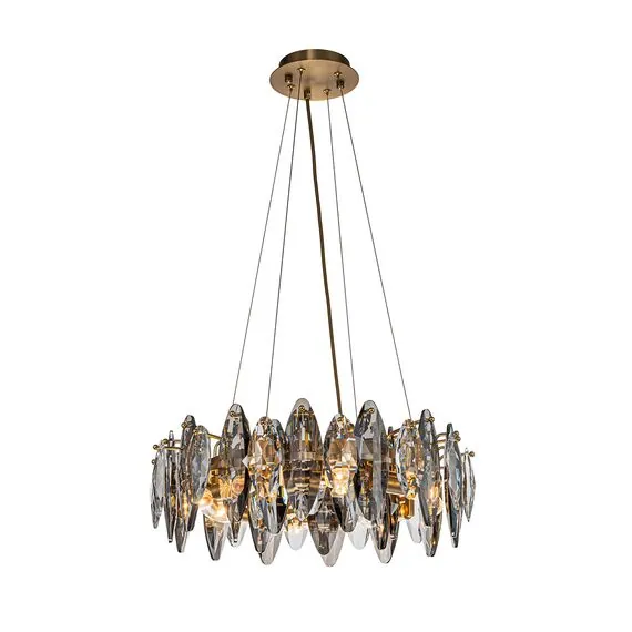 Артикул: 4303-8P; Бренд: Favourite; Коллекция: Glans; Стиль: Crystal; Назначение: гостиная; спальня; кухня; детская; холл; кафе; ресторан; кабинет; столовая; студия; Тип светильника: подвесная люстра; Тип крепления: планка; Степень защиты: IP20; Площадь освещения, м2: 16; Напряжение питания, V: 220; Натяжные потолки: Да; Тип ламп: 8*E14*40W, excluded; Общая мощность, W: 320; Индекс цветопередачи: >90; Материал: металл, хрусталь; Материал каркаса: металл, Металл; Материал плафона: хрусталь, Хрусталь; Цвет каркаса: бронзовый, Бронзовый; Цвет плафона: дымчатосерый, прозрачный; Диммирование: нет; Наличие пульта: Нет; Гарантия, мес: 36; min высота: 210; max высота: 1100; Диаметр, мм: 500; Высота потолочной чаши, мм: 25; Диаметр потолочной чаши, мм: 150; Высота плафона, мм: 180; Вес, кг: 12; Вес упаковки, кг: 12.8; Штрихкод: 4035726155334