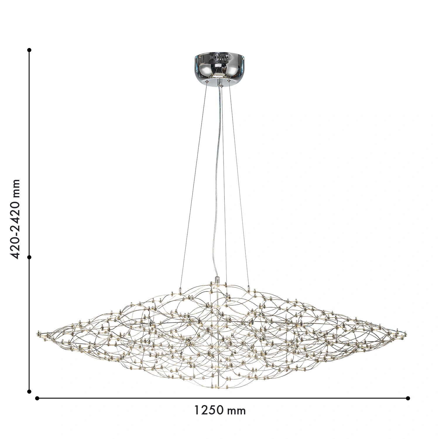 Артикул: 4305-12P; Бренд: Favourite; Коллекция: Thinner; Стиль: Modern; Назначение: гостиная; спальня; кухня; детская; холл; кафе; ресторан; кабинет; столовая; студия; Тип светильника: подвесная люстра; Тип крепления: планка; Степень защиты: IP20; Площадь освещения, м2: 21; Напряжение питания, V: 220; Натяжные потолки: Да; Тип ламп: LED*143W, 6200LM, 3000K/4500K/6000K, included, remote control; Общая мощность, W: 143; Min цветовая температура, К: 3000; Max цветовая температура, К: 6000; Материал: Металл; Материал каркаса: металл, Металл; Материал плафона: металл, Металл; Цвет каркаса: хром, Хром; Диммирование: нет; Наличие пульта: Нет; Гарантия, мес: 36; min высота: 420; max высота: 2420; Диаметр, мм: 1250; Высота потолочной чаши, мм: 85; Диаметр потолочной чаши, мм: 180; Высота плафона, мм: 335; Вес, кг: 3.9; Вес упаковки, кг: 4.8; Длина упаковки, см: 65; Ширина упаковки, см: 40; Высота упаковки, см: 40; Штрихкод: 4035726155419