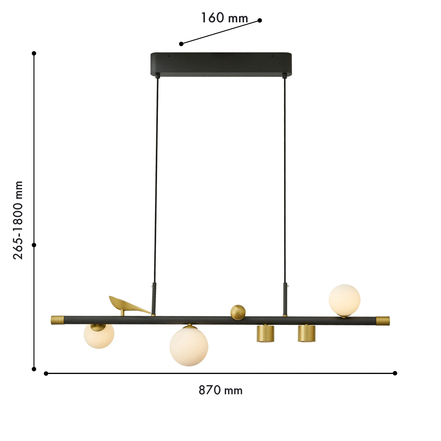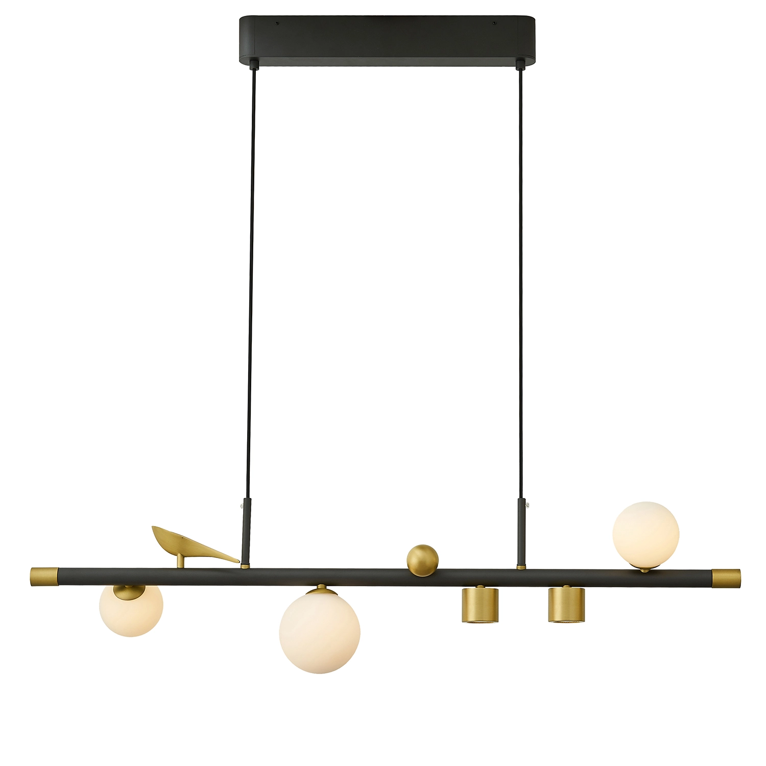 Артикул: 4324-5P; Бренд: Favourite; Коллекция: Sparrow; Стиль: Ambient; Назначение: гостиная; спальня; кухня; детская; холл; кафе; ресторан; кабинет; столовая; студия; Тип светильника: подвесная люстра; Тип крепления: планка; Степень защиты: IP20; Площадь освещения, м2: 7; Напряжение питания, V: 220; Натяжные потолки: Да; Тип ламп: 2*LED*6W + 3*LED*5W, 2160LM, 4000K, included; Общая мощность, W: 27; Max цветовая температура, К: 4000; Материал: Металл, Стекло; Материал каркаса: металл, Металл; Материал плафона: стекло, Стекло; Цвет каркаса: черный, Черный, Чёрный, чёрный; Цвет плафона: белый, Белый; Диммирование: нет; Наличие пульта: Нет; Гарантия, мес: 36; Длина, мм: 870; Ширина, мм: 160; min высота: 265; max высота: 1800; Длина потолочной чаши, мм: 380; Высота потолочной чаши, мм: 55; Высота плафона, мм: 210; Вес, кг: 2.9; Вес упаковки, кг: 3.9; Длина упаковки, см: 101; Ширина упаковки, см: 35; Высота упаковки, см: 19.5; Штрихкод: 4035726155846