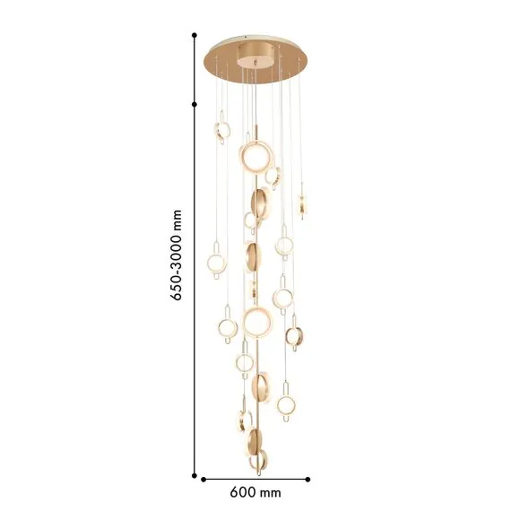 Артикул: 4334-32P; Бренд: Favourite; Коллекция: Yo-yo; Стиль: Modern; Назначение: гостиная; спальня; кухня; детская; холл; кафе; ресторан; кабинет; столовая; студия; Тип светильника: потолочная люстра; Тип крепления: планка; Степень защиты: IP20; Площадь освещения, м2: 34; Напряжение питания, V: 220; Натяжные потолки: Нет; Тип ламп: 32*LED*4W, 10240LM, 4000K, included; Общая мощность, W: 128; Max цветовая температура, К: 4000; Материал: металл, акрил; Материал каркаса: металл, Металл; Материал плафона: акрил, Акрил; Цвет каркаса: золотой, Золотой; Цвет плафона: прозрачный, Прозрачный; Диммирование: нет; Наличие пульта: Нет; Гарантия, мес: 36; min высота: 650; max высота: 3000; Диаметр, мм: 600; Вес, кг: 12; Вес упаковки, кг: 15; Длина упаковки, см: 74; Ширина упаковки, см: 74; Высота упаковки, см: 24; Штрихкод: 4035726155976