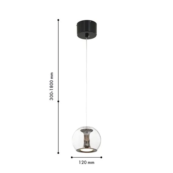 Артикул: 4335-1P; Бренд: Favourite; Коллекция: Sfar; Стиль: Modern; Назначение: гостиная; спальня; кухня; детская; холл; кафе; ресторан; кабинет; столовая; студия; Тип светильника: подвес; Тип крепления: планка; Степень защиты: IP20; Площадь освещения, м2: 2; Напряжение питания, V: 220; Натяжные потолки: Да; Тип ламп: LED*7W, 560LM, 4000K, included; Общая мощность, W: 7; Max цветовая температура, К: 4000; Материал: металл, стекло, акрил; Материал каркаса: металл, Металл; Материал плафона: стекло, Стекло; Цвет каркаса: черный, Черный, Чёрный, чёрный; Цвет плафона: прозрачный, Прозрачный; Диммирование: нет; Наличие пульта: Нет; Гарантия, мес: 36; min высота: 300; max высота: 1800; Диаметр, мм: 120; Высота потолочной чаши, мм: 124.5; Диаметр потолочной чаши, мм: 70; Высота плафона, мм: 100; Вес, кг: 1.5; Вес упаковки, кг: 2.5; Длина упаковки, см: 35; Ширина упаковки, см: 20; Высота упаковки, см: 30.5; Штрихкод: 4035726156027