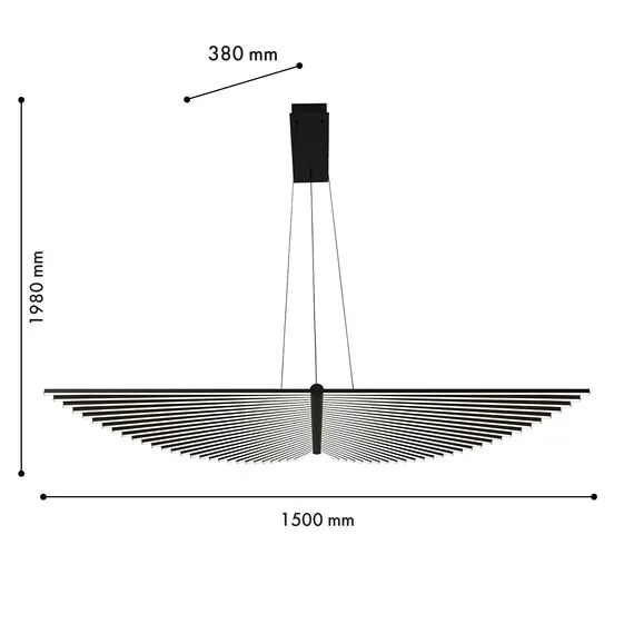 Артикул: 4381-1P; Бренд: Favourite; Коллекция: Vingar; Стиль: Modern; Назначение: гостиная; спальня; кухня; детская; холл; кафе; ресторан; кабинет; столовая; студия; Тип светильника: подвесная люстра; Тип крепления: планка; Степень защиты: IP20; Площадь освещения, м2: 24; Напряжение питания, V: 220; Натяжные потолки: Да; Тип ламп: LED*120W, 7200LM, 4000K, CRI>90, included; Общая мощность, W: 120; Max цветовая температура, К: 4000; Индекс цветопередачи: >90; Материал: металл, акрил; Материал каркаса: металл, Металл; Материал плафона: металл, Металл; Цвет каркаса: черный, Черный, Чёрный, чёрный; Цвет плафона: черный, Черный, чёрный, Чёрный; Диммирование: нет; Наличие пульта: Нет; Гарантия, мес: 36; Длина, мм: 1500; Ширина, мм: 380; min высота: 1980; max высота: 1980; Длина потолочной чаши, мм: 365; Высота потолочной чаши, мм: 40; Вес, кг: 5.9; Вес упаковки, кг: 8.7; Длина упаковки, см: 161.5; Ширина упаковки, см: 55; Высота упаковки, см: 22.5; Штрихкод: 4035726156645