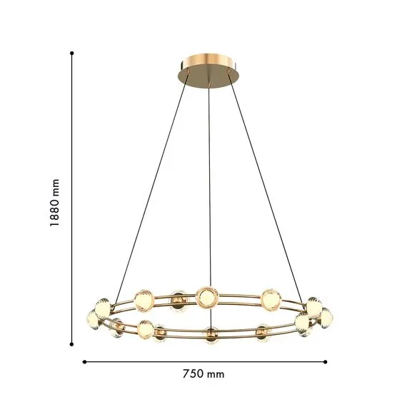Артикул: 4382-15P; Бренд: Favourite; Коллекция: Rondell; Стиль: Modern; Назначение: гостиная; спальня; кухня; детская; холл; кафе; ресторан; кабинет; столовая; студия; Тип светильника: подвесная люстра; Тип крепления: планка; Степень защиты: IP20; Площадь освещения, м2: 13; Напряжение питания, V: 220; Натяжные потолки: Да; Тип ламп: 15*LED*3.6W, 3850LM, 4000K, CRI>90, included; Общая мощность, W: 54; Max цветовая температура, К: 4000; Индекс цветопередачи: >90; Материал: металл, акрил; Материал каркаса: металл, Металл; Материал плафона: акрил, Акрил; Цвет каркаса: золотой, Золотой; Цвет плафона: прозрачный, Прозрачный; Диммирование: нет; Наличие пульта: Нет; Гарантия, мес: 36; min высота: 1880; max высота: 1880; Диаметр, мм: 750; Высота потолочной чаши, мм: 40; Диаметр потолочной чаши, мм: 180; Вес, кг: 2.9; Вес упаковки, кг: 5.5; Длина упаковки, см: 81.5; Ширина упаковки, см: 81.5; Высота упаковки, см: 13; Штрихкод: 4035726156690