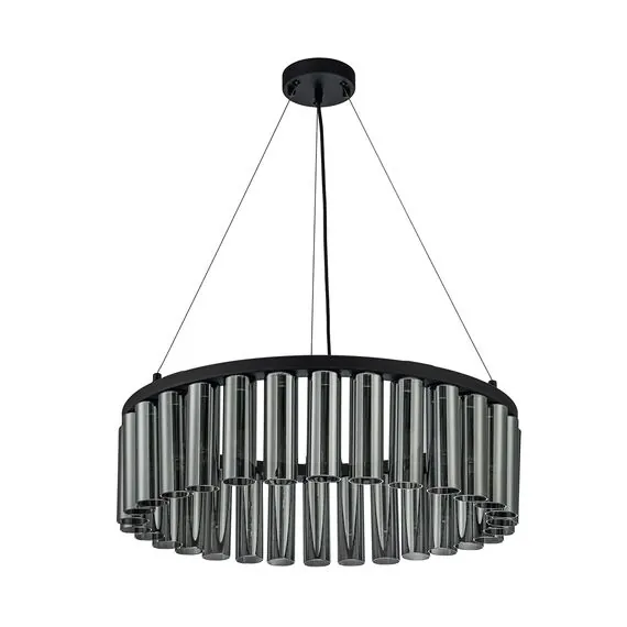 Артикул: 4504-30P; Бренд: Favourite; Коллекция: Slang; Стиль: Modern; Назначение: гостиная; спальня; кухня; детская; холл; кафе; ресторан; кабинет; столовая; студия; Тип светильника: подвесная люстра; Тип крепления: планка; Степень защиты: IP20; Площадь освещения, м2: 7; Напряжение питания, V: 220; Натяжные потолки: Да; Тип ламп: 30*G9LED*2W, 2100LM, 3000K, included; Общая мощность, W: 60; Материал: Металл, Стекло; Материал каркаса: металл, Металл; Материал плафона: стекло, Стекло; Цвет каркаса: черный, Черный, Чёрный, чёрный; Цвет плафона: черный, Черный, чёрный, Чёрный; Диммирование: нет; Наличие пульта: Нет; Гарантия, мес: 36; min высота: 160; max высота: 1360; Диаметр, мм: 590; Высота плафона, мм: 160; Вес, кг: 5.5; Вес упаковки, кг: 7; Длина упаковки, см: 66; Ширина упаковки, см: 66; Высота упаковки, см: 21; Штрихкод: 4035726158793