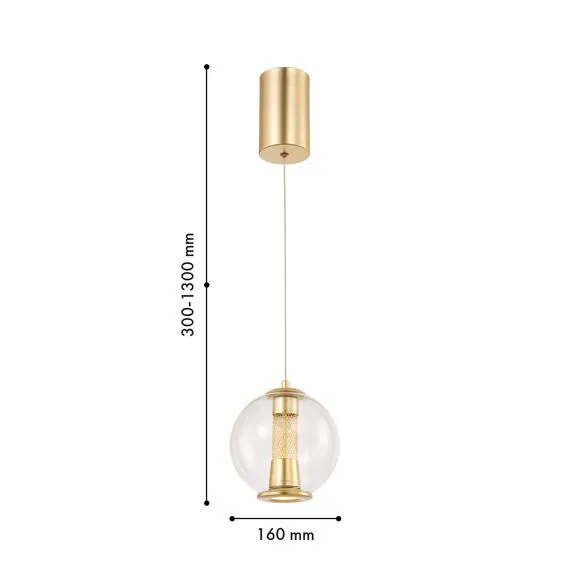 Артикул: 4551-1P; Бренд: Favourite; Коллекция: Boble; Стиль: Modern; Назначение: гостиная; спальня; кухня; детская; холл; кафе; ресторан; кабинет; столовая; студия; Тип светильника: подвес; Тип крепления: планка; Степень защиты: IP20; Площадь освещения, м2: 1; Напряжение питания, V: 220; Натяжные потолки: Да; Тип ламп: LED*7W, 275LM, 4000K, included; Общая мощность, W: 7; Max цветовая температура, К: 4000; Материал: Металл, Стекло; Материал каркаса: металл, Металл; Материал плафона: стекло, Стекло; Цвет каркаса: золотой, Золотой; Цвет плафона: прозрачный, Прозрачный; Диммирование: нет; Наличие пульта: Нет; Гарантия, мес: 36; min высота: 300; max высота: 1300; Диаметр, мм: 160; Высота потолочной чаши, мм: 130; Диаметр потолочной чаши, мм: 80; Высота плафона, мм: 171; Вес, кг: 0.8; Вес упаковки, кг: 1.2; Длина упаковки, см: 35; Ширина упаковки, см: 23; Высота упаковки, см: 23.5; Штрихкод: 4035726159356