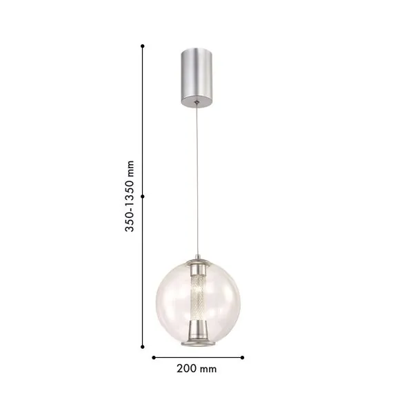 Артикул: 4552-2P; Бренд: Favourite; Коллекция: Boble; Стиль: Modern; Назначение: гостиная; спальня; кухня; детская; холл; кафе; ресторан; кабинет; столовая; студия; Тип светильника: подвес; Тип крепления: планка; Степень защиты: IP20; Площадь освещения, м2: 1; Напряжение питания, V: 220; Натяжные потолки: Да; Тип ламп: LED*7W, 275LM, 4000K, included; Общая мощность, W: 7; Max цветовая температура, К: 4000; Материал: Металл, Стекло; Материал каркаса: металл, Металл; Материал плафона: стекло, Стекло; Цвет каркаса: серебристый, Серебристый; Цвет плафона: прозрачный, Прозрачный; Диммирование: нет; Наличие пульта: Нет; Гарантия, мес: 36; min высота: 350; max высота: 1350; Диаметр, мм: 200; Высота потолочной чаши, мм: 130; Диаметр потолочной чаши, мм: 80; Высота плафона, мм: 217; Вес, кг: 0.9; Вес упаковки, кг: 1.5; Длина упаковки, см: 40; Ширина упаковки, см: 27; Высота упаковки, см: 27.5; Штрихкод: 4035726159387