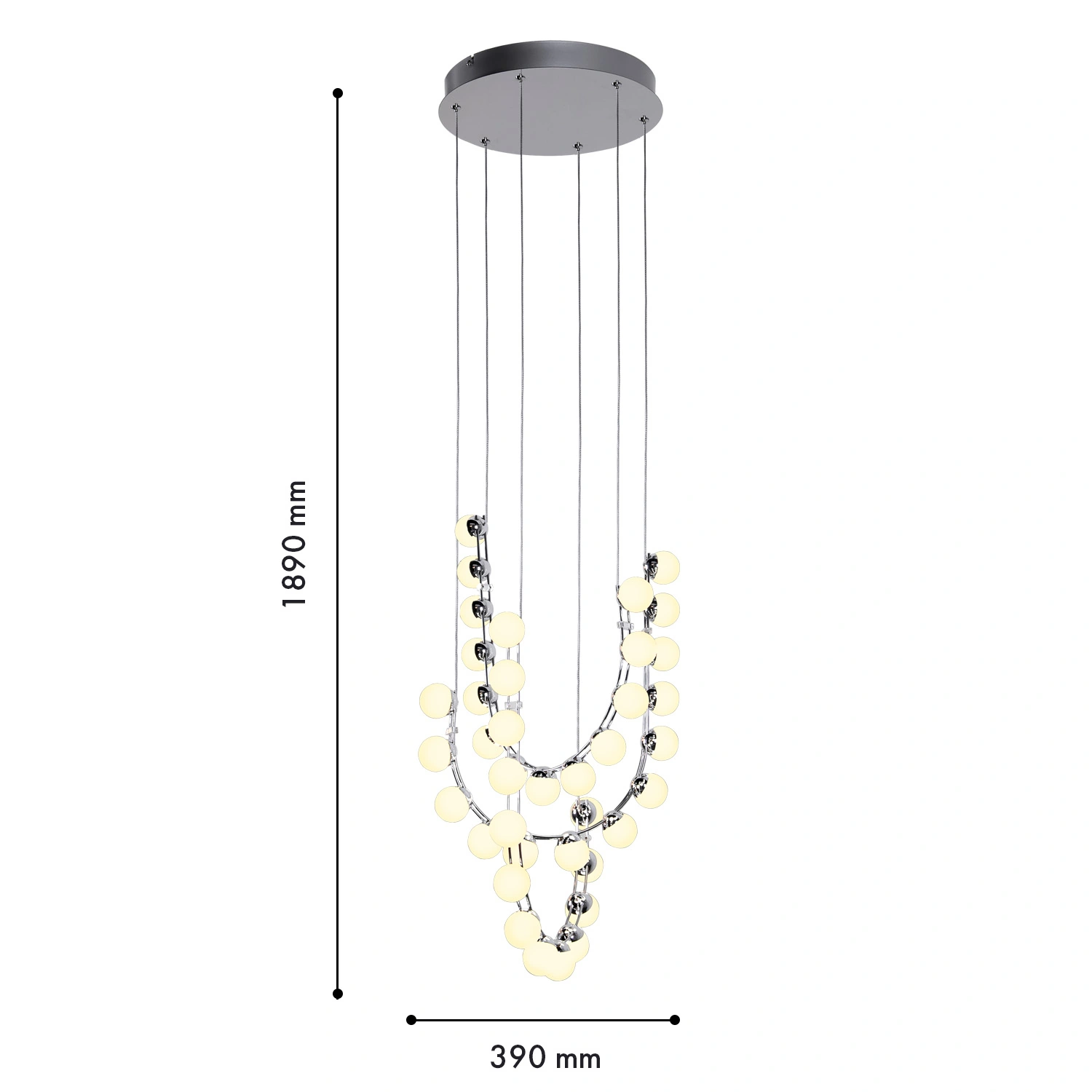 Артикул: 4589-4P; Бренд: Favourite; Коллекция: Helmet; Стиль: Modern; Назначение: гостиная; спальня; кухня; детская; холл; кафе; ресторан; кабинет; столовая; студия; Тип светильника: подвесная люстра; Тип крепления: планка; Степень защиты: IP20; Площадь освещения, м2: 13; Напряжение питания, V: 220; Натяжные потолки: Да; Тип ламп: LED*48W, 3800LM, 4000K, included; Общая мощность, W: 48; Max цветовая температура, К: 4000; Индекс цветопередачи: >90; Материал: Металл, Пластик; Материал каркаса: металл, Металл; Материал плафона: акрил, Акрил; Цвет каркаса: хром, Хром; Цвет плафона: белый, Белый; Диммирование: нет; Наличие пульта: Нет; Гарантия, мес: 36; min высота: 1890; max высота: 1890; Диаметр, мм: 390; Высота потолочной чаши, мм: 40; Диаметр потолочной чаши, мм: 300; Высота плафона, мм: 650; Вес, кг: 2.3; Вес упаковки, кг: 3.3; Длина упаковки, см: 65; Ширина упаковки, см: 46; Высота упаковки, см: 19; Штрихкод: 4035726160376
