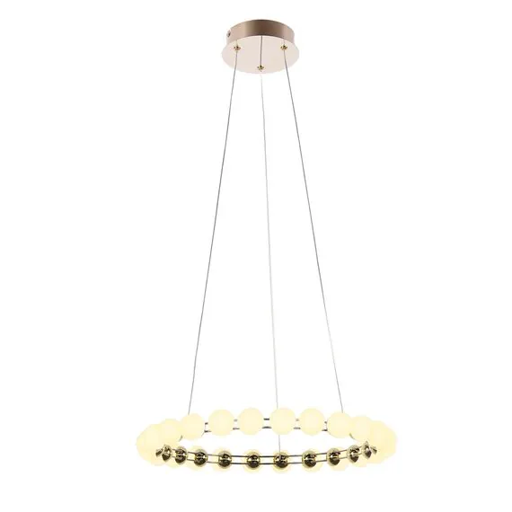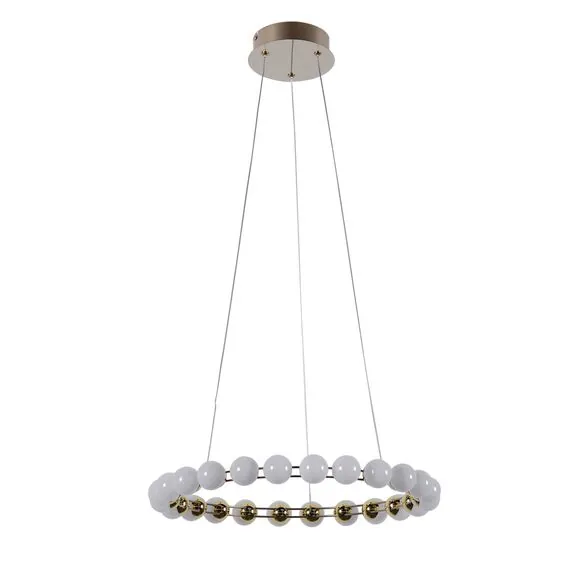 Артикул: 4590-5P; Бренд: Favourite; Коллекция: Helmet; Стиль: Modern; Назначение: гостиная; спальня; кухня; детская; холл; кафе; ресторан; кабинет; столовая; студия; Тип светильника: подвесная люстра; Тип крепления: планка; Степень защиты: IP20; Площадь освещения, м2: 7; Напряжение питания, V: 220; Натяжные потолки: Да; Тип ламп: LED*27W, 2150LM, 4000K, included; Общая мощность, W: 27; Max цветовая температура, К: 4000; Материал: Металл, Пластик; Материал каркаса: металл, Металл; Материал плафона: пластик, Пластик; Цвет каркаса: латунь, Латунь; Цвет плафона: белый, Белый; Диммирование: нет; Наличие пульта: Нет; Гарантия, мес: 36; min высота: 1585; max высота: 1585; Диаметр, мм: 480; Высота потолочной чаши, мм: 40; Диаметр потолочной чаши, мм: 140; Вес, кг: 1; Вес упаковки, кг: 2; Длина упаковки, см: 53; Ширина упаковки, см: 53; Высота упаковки, см: 10; Штрихкод: 4035726160321