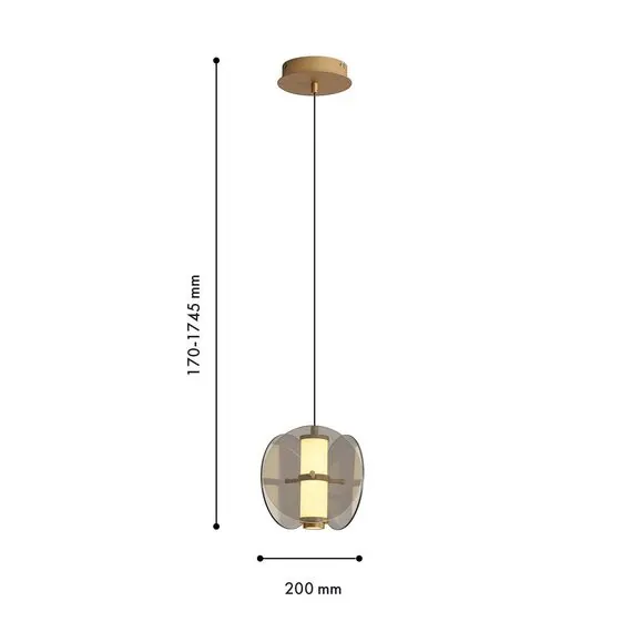 Артикул: 4625-1P; Бренд: Favourite; Коллекция: Fada; Стиль: Modern; Назначение: гостиная; спальня; кухня; детская; холл; кафе; ресторан; кабинет; столовая; студия; Тип светильника: подвес; Тип крепления: планка; Степень защиты: IP20; Площадь освещения, м2: 2.1395348837209; Напряжение питания, V: 220; Натяжные потолки: Да; Тип ламп: LED*10W, 490LM, 3000K, included; Max цветовая температура, К: 3000; Индекс цветопередачи: >90; Материал: Металл; Материал каркаса: металл, Металл; Материал плафона: стекло, Стекло; Цвет каркаса: латунь, Латунь; Цвет плафона: дымчатосерый; Диммирование: нет; Наличие пульта: Нет; Гарантия, мес: 36; min высота: 210; max высота: 1745; Диаметр, мм: 200; Высота потолочной чаши, мм: 36.5; Диаметр потолочной чаши, мм: 160; Высота плафона, мм: 170; Вес, кг: 1.9; Вес упаковки, кг: 2.4; Длина упаковки, см: 35; Ширина упаковки, см: 25; Высота упаковки, см: 22; Штрихкод: 4035726161212