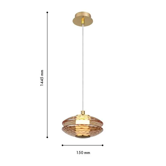 Артикул: 4641-1P; Бренд: Favourite; Коллекция: Claros; Стиль: Modern; Назначение: гостиная; спальня; кухня; детская; холл; кафе; ресторан; кабинет; столовая; студия; Тип светильника: подвес; Тип крепления: планка; Степень защиты: IP20; Площадь освещения, м2: 1; Напряжение питания, V: 220; Натяжные потолки: Да; Тип ламп: LED*6W, 630LM, 4000K, included; Max цветовая температура, К: 4000; Индекс цветопередачи: >90; Материал: Металл; Материал каркаса: металл, Металл; Материал плафона: стекло, Стекло; Цвет каркаса: латунь, Латунь; Цвет плафона: янтарный, Янтарный; Диммирование: нет; Наличие пульта: Нет; Гарантия, мес: 36; min высота: 245; max высота: 1445; Диаметр, мм: 150; Высота плафона, мм: 100; Вес, кг: 1; Вес упаковки, кг: 1.3; Длина упаковки, см: 28; Ширина упаковки, см: 21; Высота упаковки, см: 22; Штрихкод: 4035726161489