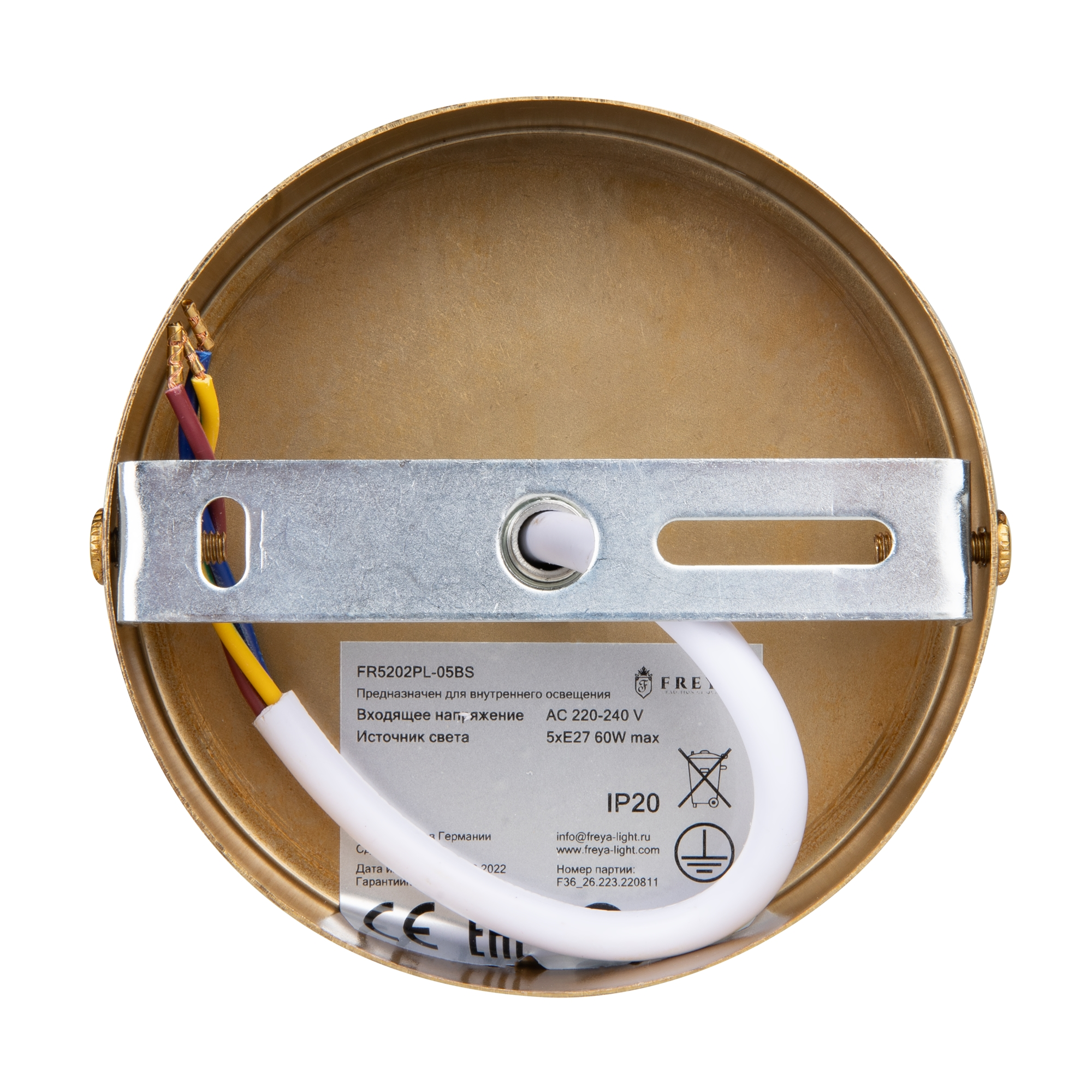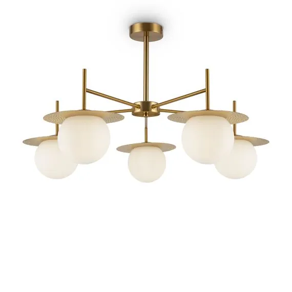 Артикул: FR5202PL-05BS; Бренд: Freya; Коллекция: Camelia; Стиль: Modern; Тип светильника: Подвесной светильник; Тип крепления: планка; Степень защиты: IP20; Вольтаж, V: AC220_240; Класс защиты: I; LED: Нет; Количество ламп: 5; Тип цоколя: E27; Мощность ламп, W: 60; Материал плафона: металл, Металл; Цвет: Латунь; Цвет плафона: Матовый Белый; Гарантия, мес: 24; высота: 420; Диаметр, мм: 750; Высота потолочной чаши, мм: 25; Диаметр потолочной чаши, мм: 100; Вес, кг: 2.41; Объем упаковки, м3: 0.05273; Штрихкод: 4251110056500
