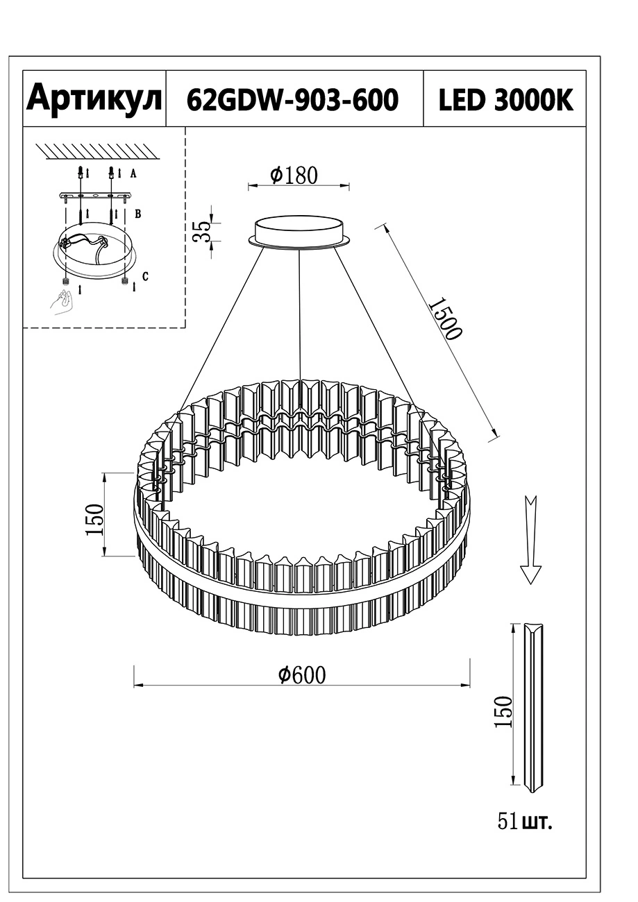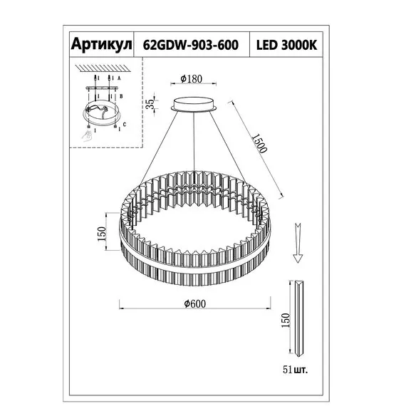 Garda Decor 62GDW-903-600 Люстра Alpina d60см h15см