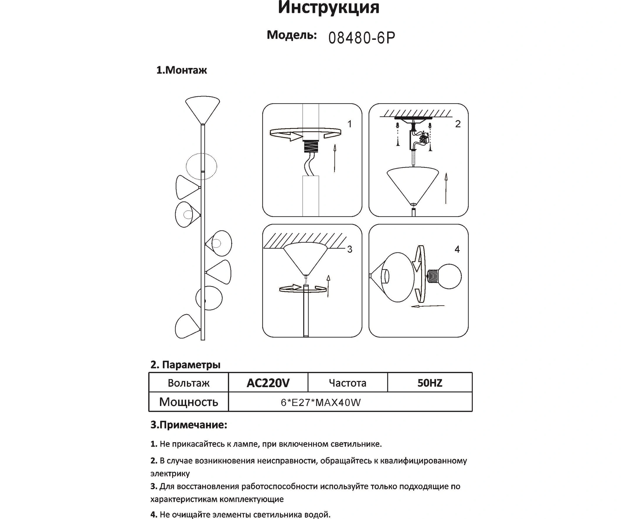 Артикул: 08480-6P,19; Бренд: Kink light; Серия: Эвелин; Стиль: Loft; Тип светильника: Светильники; место размещения: Для комнаты; Степень защиты: IP20; Площадь освещения, м2: 1; Количество ламп: 6; Тип ламп: накаливания, Накаливания; Тип цоколя: E14; Мощность ламп, W: 4; Общая мощность, W: 4; Световой поток, Lm: 216; Индекс цветопередачи: Ra > 80; Материал: Металл; Цвет каркаса: черный, Черный; Лампы в комплекте: Нет; Диммирование: нет; Наличие пульта: Нет; Гарантия, мес: 12; высота: 1650; Диаметр, мм: 300; Вес упаковки, кг: 4.23; Длина упаковки, см: 121; Ширина упаковки, см: 41; Высота упаковки, см: 34.5; Объем упаковки, м3: 0.171; Штрихкод: 6900000807361