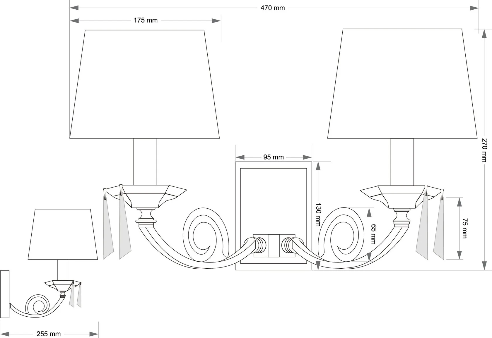 Артикул: MON-K-2(P/A); Бренд: KUTEK; Серия: Monza; Стиль: Классицизм; товарная группа: Бра; место размещения: Гостиная, зал, прихожая, коридор, спальня, ванная комната; Форма: Конус; Тип крепления: монтажная пластина; Регулировка по высоте: Нет; Напряжение питания, V: 220; Температурный режим: комнатная температура; Количество ламп: 2; Тип ламп: накаливания, Накаливания; Тип цоколя: 2xE14; Max мощность лампы, W: 40; Общая мощность, W: 80; Материал каркаса: Латунь; Материал плафона: ткань, Ткань; Цвет: патина; Цвет каркаса: патина, Патина; Цвет плафона: Любой из представленных; Лампы в комплекте: Нет; Диммирование: нет; Длина, мм: 255; высота: 270; Глубина, мм: 470