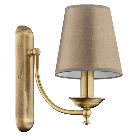 Артикул: SAN-K-1(P/A)CR; Бренд: KUTEK; Серия: SAN MARINO LAMPSHADE; Стиль: Classic; товарная группа: Бра; место размещения: Гостиная, зал, прихожая, коридор, спальня, ванная комната; Форма: Конус; Тип крепления: монтажная пластина; Регулировка по высоте: Нет; Напряжение питания, V: 220; Температурный режим: комнатная температура; Количество ламп: 1; Тип ламп: накаливания, Накаливания; Тип цоколя: 1xE14; Max мощность лампы, W: 40; Общая мощность, W: 40; Материал каркаса: Латунь; Материал плафона: ткань, Ткань; Цвет: патина; Цвет каркаса: патина, Патина; Цвет плафона: Любой из представленных; Лампы в комплекте: Нет; Диммирование: нет; Длина, мм: 180; высота: 230; Глубина, мм: 290