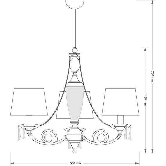 Артикул: MON-ZW-3(P/A); Бренд: KUTEK; Серия: Monza; Стиль: Классицизм; товарная группа: Люстра; место размещения: Гостиная, зал, прихожая, коридор, спальня; Форма: Конус; Тип крепления: Крюк; Регулировка по высоте: Да; Общая мощность, W: 120; Напряжение питания, V: 220; Температурный режим: комнатная температура; Количество ламп: 3; Тип ламп: накаливания, Накаливания; Тип цоколя: 3xE14; Max мощность лампы, W: 40; Материал каркаса: Латунь; Материал плафона: ткань, Ткань; Цвет: патина; Цвет каркаса: патина, Патина; Цвет плафона: Любой из представленных; Лампы в комплекте: Нет; Диммирование: нет; Длина, мм: 550; высота: 700; min высота: 570