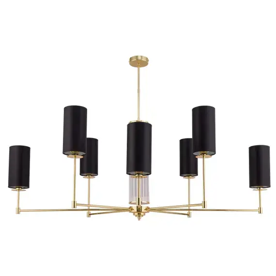 Артикул: EMP-ZWL-8(Z); Бренд: KUTEK; Серия: EMPOLI; Стиль: Современная классика; товарная группа: Люстра; место размещения: Гостиная, зал, прихожая, коридор, спальня; Форма: Цилиндр; Тип крепления: Крюк; Регулировка по высоте: Да; Напряжение питания, V: 220; Температурный режим: комнатная температура; Количество ламп: 8; Тип ламп: накаливания, Накаливания; Тип цоколя: 8xE14; Max мощность лампы, W: 40; Общая мощность, W: 320; Материал каркаса: Латунь; Материал плафона: ткань, Ткань; Цвет: золото; Цвет каркаса: золото, Золото; Цвет плафона: Любой из представленных; Лампы в комплекте: Нет; Диммирование: да; Длина, мм: 1300; высота: 830; min высота: 600