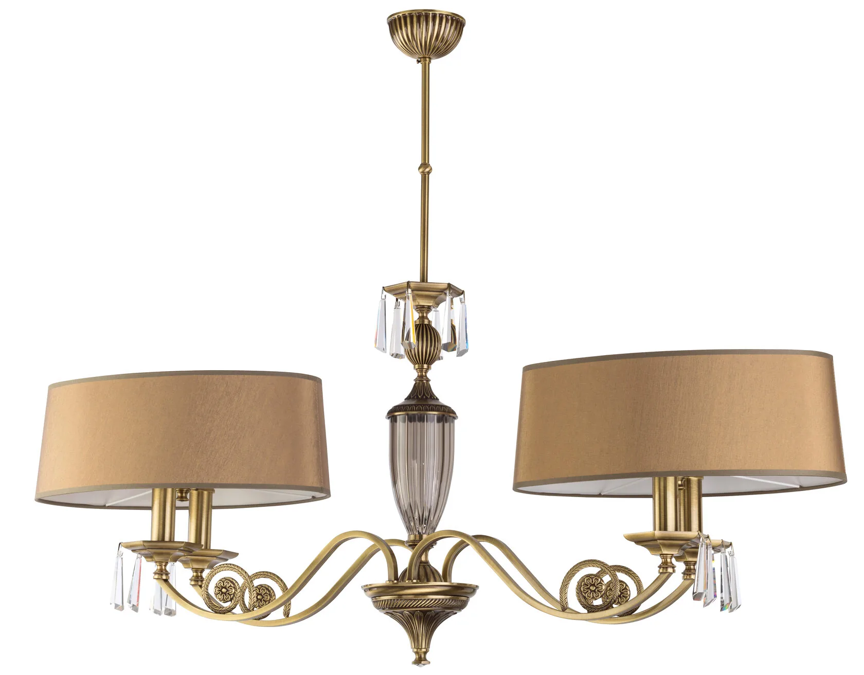 Артикул: MON-ZWL-4(P/A); Бренд: KUTEK; Серия: Monza; Стиль: Классицизм; товарная группа: Люстра; место размещения: Гостиная, зал, прихожая; Форма: Конус; Тип крепления: Крюк; Регулировка по высоте: Да; Напряжение питания, V: 220; Температурный режим: комнатная температура; Количество ламп: 4; Тип ламп: накаливания, Накаливания; Тип цоколя: 4xE14; Max мощность лампы, W: 40; Общая мощность, W: 160; Материал каркаса: Латунь; Материал плафона: ткань, Ткань; Цвет: патина; Цвет каркаса: патина, Патина; Цвет плафона: Любой из представленных; Лампы в комплекте: Нет; Диммирование: нет; Длина, мм: 1010; высота: 460; min высота: 570; max высота: 700