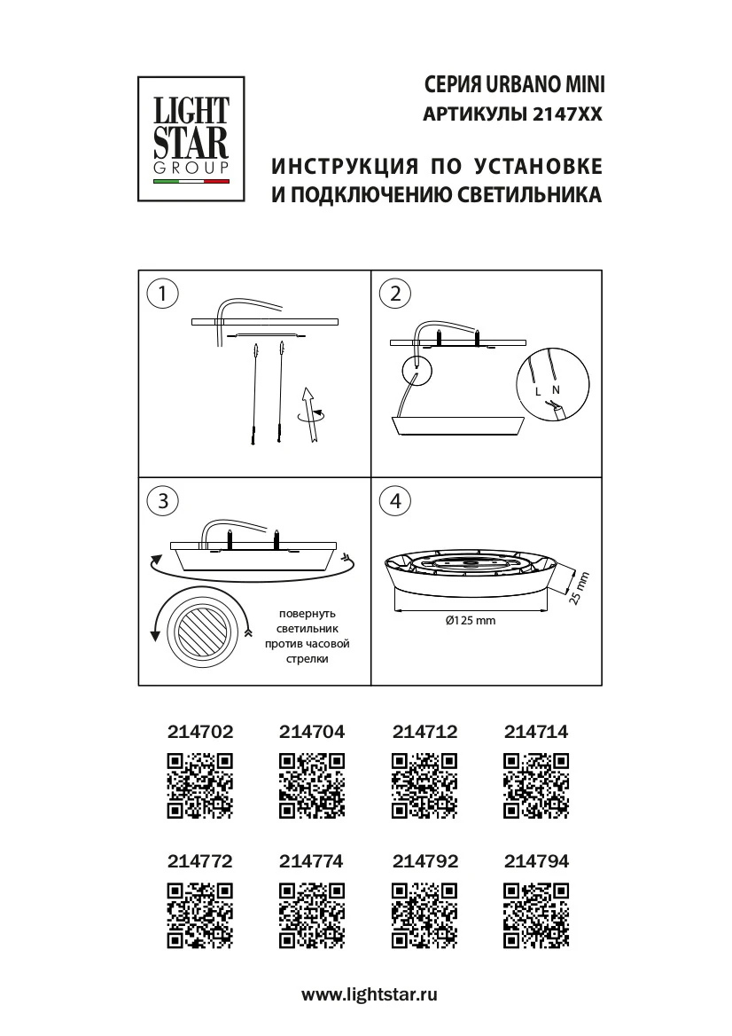 Артикул: 214712; Бренд: Lightstar; Коллекция: Urbano mini; Стиль: High-tech; место размещения: Жилая; Общественная; Срок службы, ч: 20 000; Тип крепления: Накладной; На планку; Степень защиты: IP65; Напряжение питания, V: 220; Общая мощность LED, W: 8; Световой поток, Lm: 770; Цветовая температура, K: 3 000; Индекс цветопередачи: 80; Материал каркаса: металл, Металл; Материал плафона: Металл; Пластик; Цвет каркаса: бронза, Бронза; Цвет плафона: Матовый; Бронза; высота: 25; Диаметр, мм: 125; Диаметр потолочной чаши, мм: 125; Вес, кг: 0,132; Штрихкод: 8050046560152