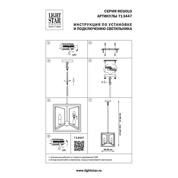 Артикул: 713447; Бренд: Lightstar; Коллекция: Regolo; Стиль: Art Deco; Тип светильника: Потолочная; место размещения: Жилая; Общественная; Тип крепления: Накладной; На планку; Степень защиты: IP20; Напряжение питания, V: 220; Количество ламп: 4; Тип ламп: ГЛН; КЛЛ; LED; Тип цоколя: E14; Мощность ламп, W: 40; Общая мощность LED, W: 24; Общая мощность, W: 160; Материал каркаса: металл, Металл; Материал плафона: металл, Металл; Цвет каркаса: Золото; Черный матовый; Цвет плафона: Золото; Черный матовый; Длина, мм: 350; Ширина, мм: 350; высота: 300; min высота: 450; max высота: 1 300; Высота потолочной чаши, мм: 70; Диаметр потолочной чаши, мм: 120; Вес, кг: 3,3; Штрихкод: 8059018268119