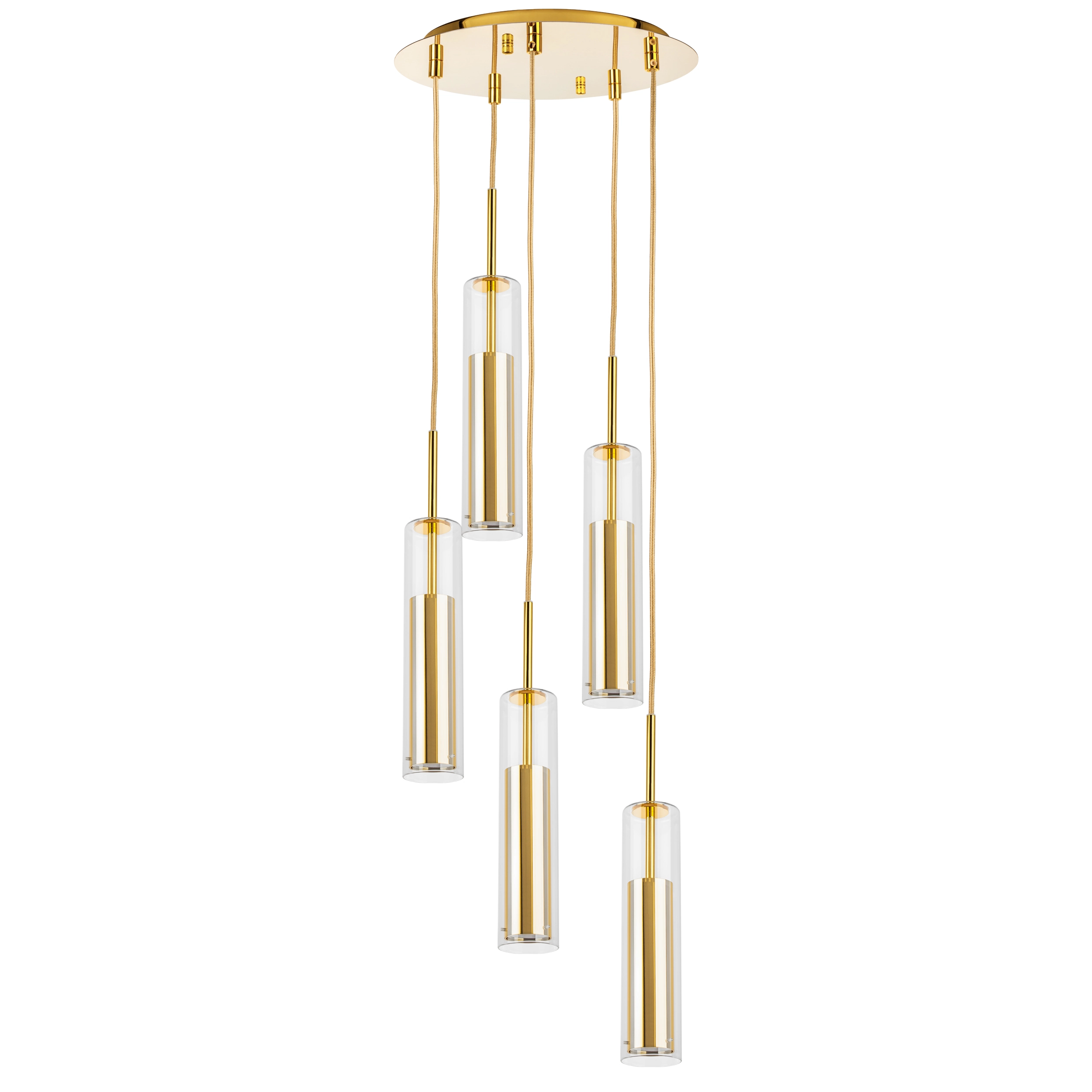 Артикул: 756052; Бренд: Lightstar; Коллекция: Cilino; Стиль: High-tech; Тип светильника: Подвесная; место размещения: Жилая; Общественная; Тип крепления: Накладной; На планку; Степень защиты: IP20; Напряжение питания, V: 220; Количество ламп: 5; Тип ламп: ГЛН; LED; Тип цоколя: GU10; Мощность ламп, W: 40; Общая мощность LED, W: 30; Общая мощность, W: 200; Материал каркаса: металл, Металл; Материал плафона: Стекло; Металл; Цвет каркаса: золото, Золото; Цвет плафона: Прозрачный; Золото; высота: 420; min высота: 465; max высота: 2 100; Диаметр, мм: 300; Высота потолочной чаши, мм: 25; Диаметр потолочной чаши, мм: 300; Вес, кг: 4,2; Штрихкод: 8059018264418