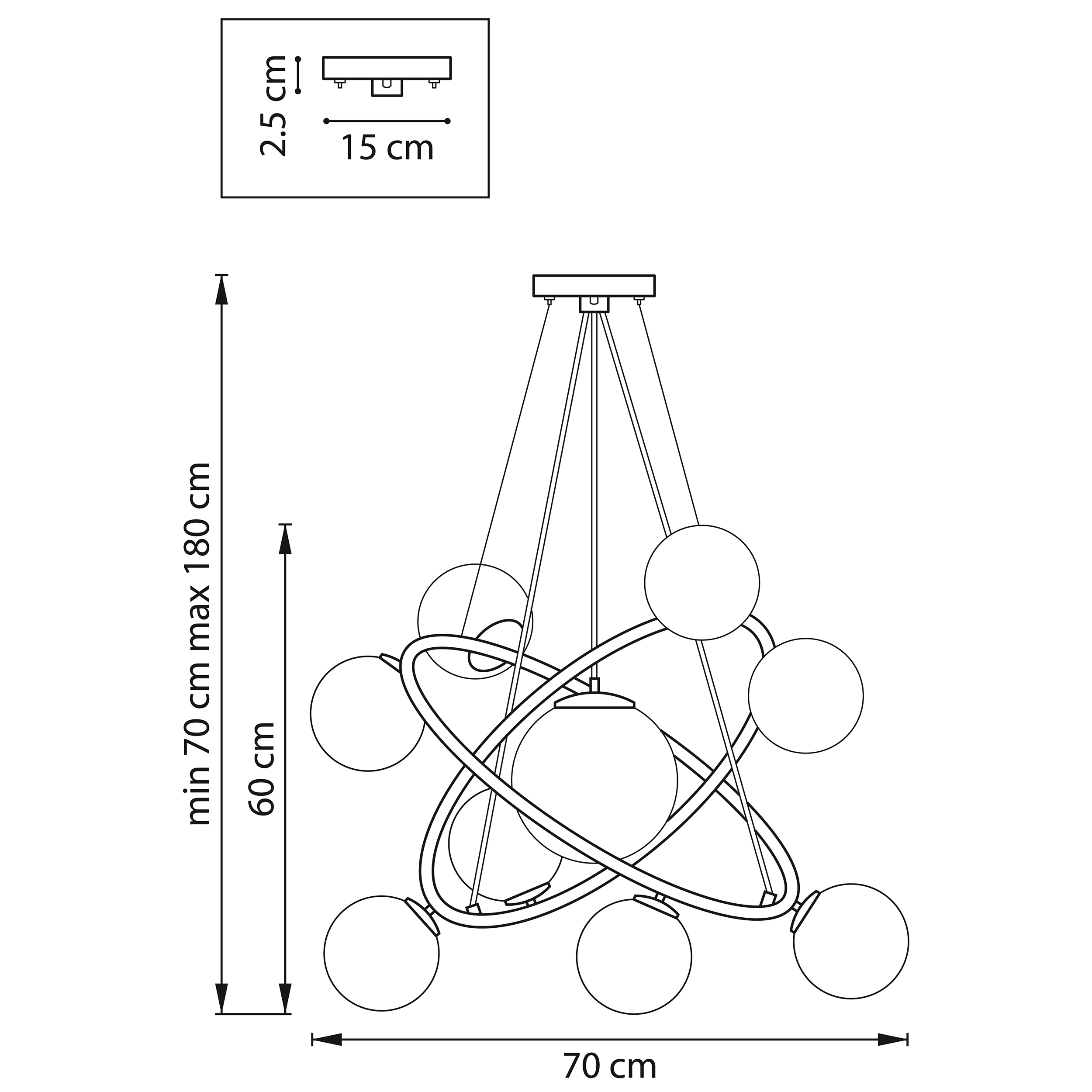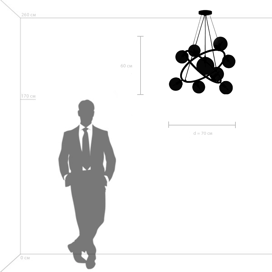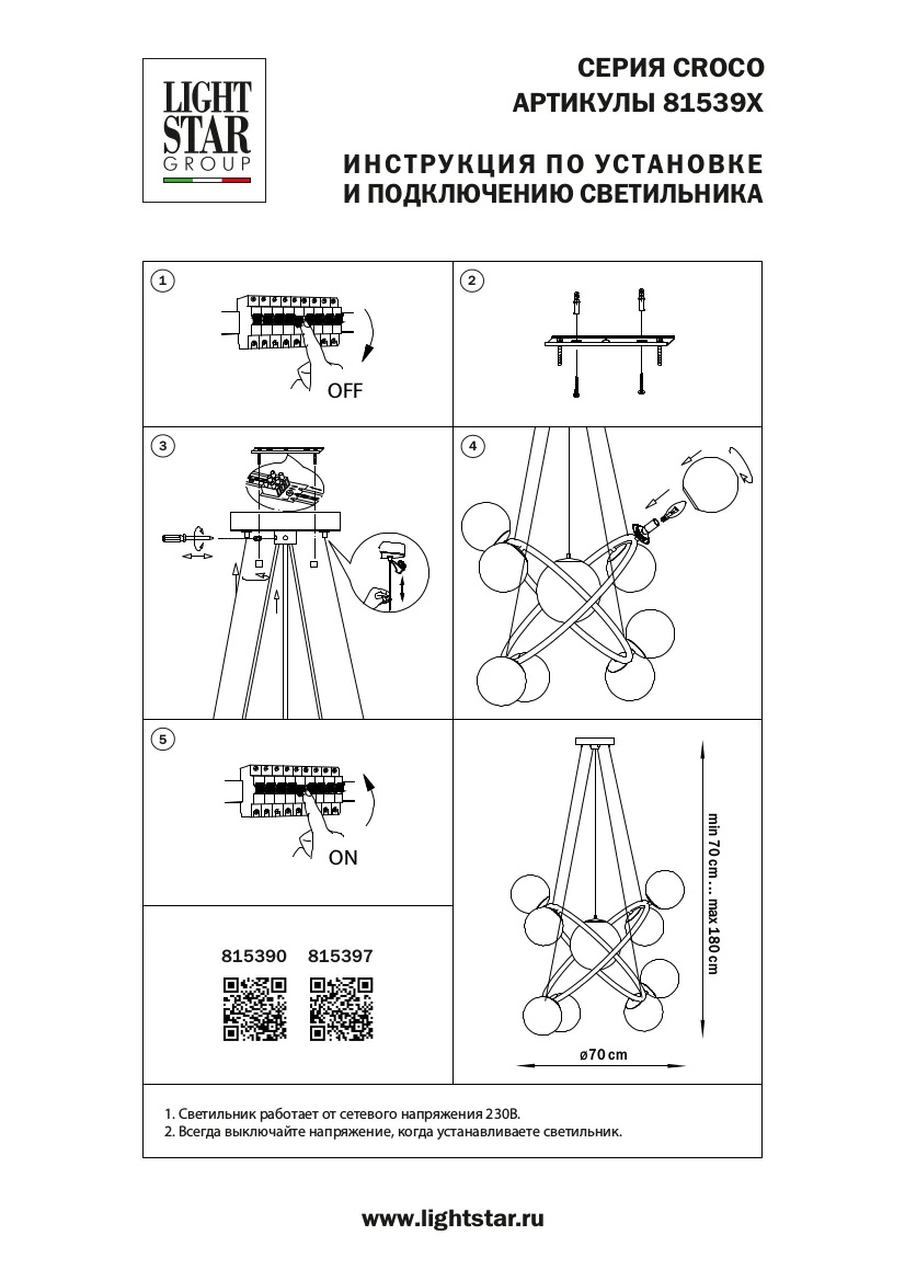 Артикул: 815390; Бренд: Lightstar; Коллекция: Croco; Стиль: Art Deco; Тип светильника: Подвесная; место размещения: Жилая; Общественная; Тип крепления: Накладной; На планку; Степень защиты: IP20; Напряжение питания, V: 220; Количество ламп: 9; Тип ламп: ГЛН; КЛЛ; LED; Тип цоколя: E14; Мощность ламп, W: 40; Общая мощность LED, W: 54; Общая мощность, W: 360; Материал каркаса: металл, Металл; Материал плафона: стекло, Стекло; Цвет каркаса: Черный матовый; Цвет плафона: прозрачный, Прозрачный; высота: 600; min высота: 700; max высота: 1 800; Диаметр, мм: 700; Высота потолочной чаши, мм: 25; Диаметр потолочной чаши, мм: 150; Вес, кг: 6,5; Штрихкод: 8059018268652
