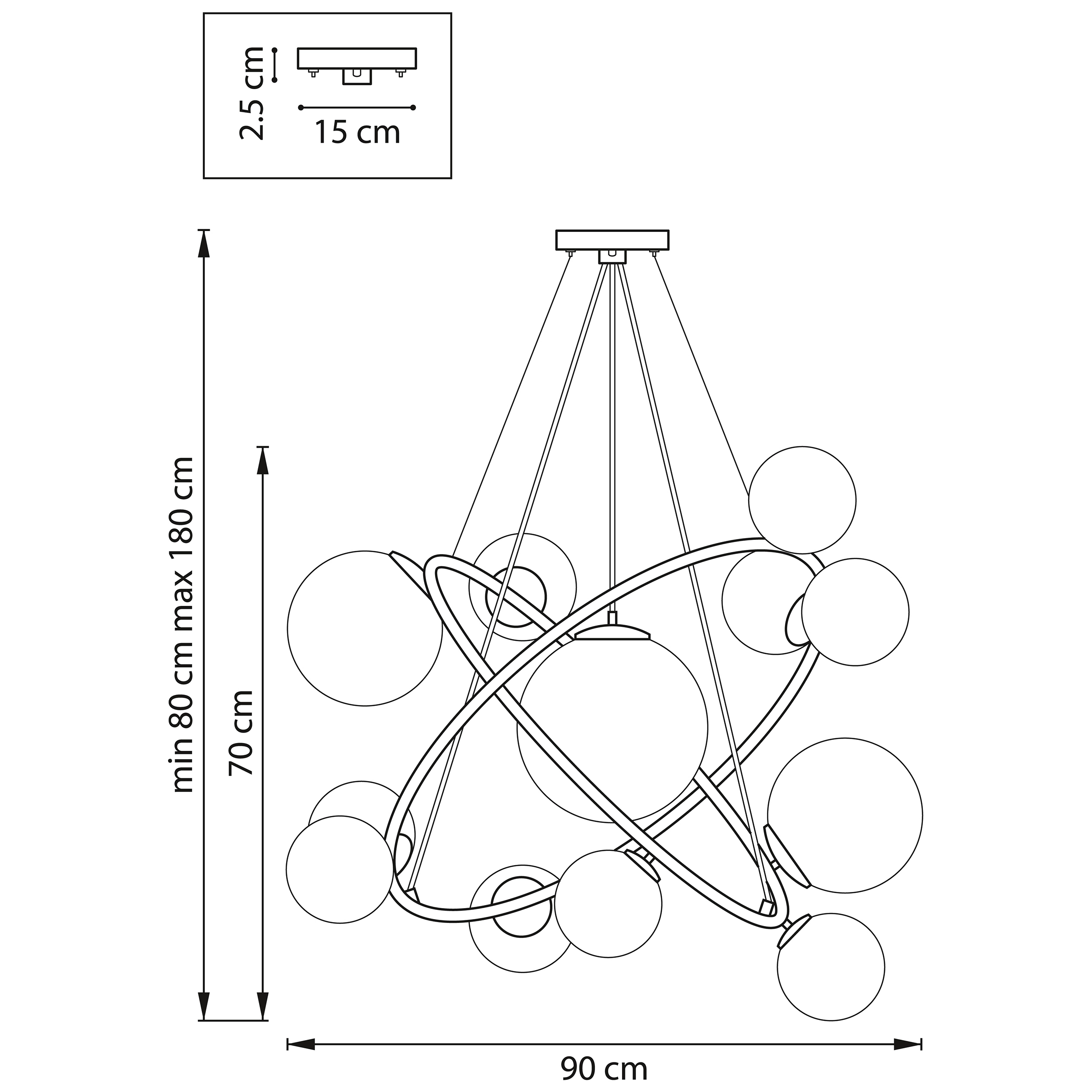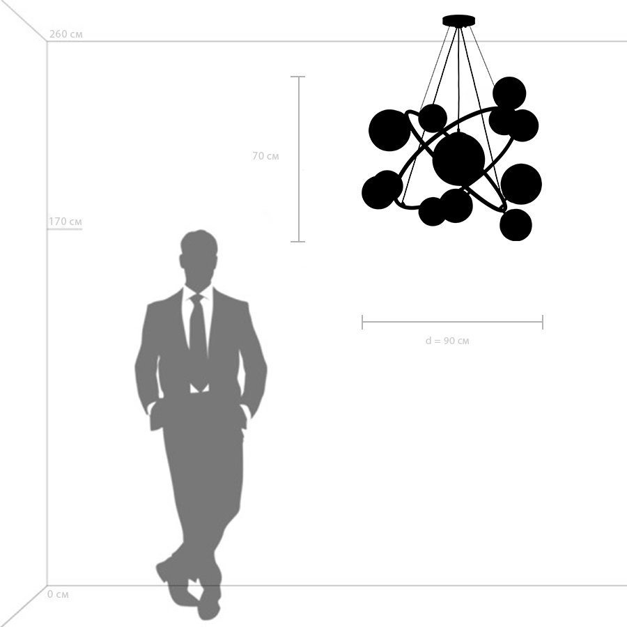 Артикул: 815410; Бренд: Lightstar; Коллекция: Croco; Стиль: Art Deco; Тип светильника: Подвесная; место размещения: Жилая; Общественная; Тип крепления: Накладной; На планку; Степень защиты: IP20; Напряжение питания, V: 220; Количество ламп: 12; Тип ламп: ГЛН; КЛЛ; LED; Тип цоколя: E14; Мощность ламп, W: 40; Общая мощность LED, W: 72; Общая мощность, W: 480; Материал каркаса: металл, Металл; Материал плафона: стекло, Стекло; Цвет каркаса: Черный матовый; Цвет плафона: прозрачный, Прозрачный; высота: 700; min высота: 800; max высота: 1 800; Диаметр, мм: 900; Высота потолочной чаши, мм: 25; Диаметр потолочной чаши, мм: 150; Вес, кг: 9,25; Штрихкод: 8059018268676