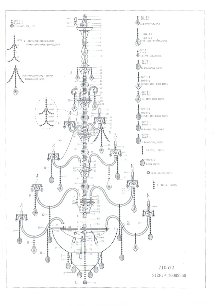 Артикул: 710572; Бренд: Lightstar; Коллекция: Tesoro; Стиль: Art Deco; Тип светильника: Подвесная; место размещения: Жилая; Общественная; Степень защиты: IP20; Напряжение питания, V: 220; Количество ламп: 57; Тип ламп: ГЛН; КЛЛ; LED; Тип цоколя: E14; Мощность ламп, W: 40; Общая мощность LED, W: 342; Общая мощность, W: 2 280; высота: 2 360; min высота: 2 393; max высота: 2 505; Диаметр, мм: 1 690; Высота потолочной чаши, мм: 330; Диаметр потолочной чаши, мм: 202; Вес, кг: 119; Штрихкод: 2710572000008