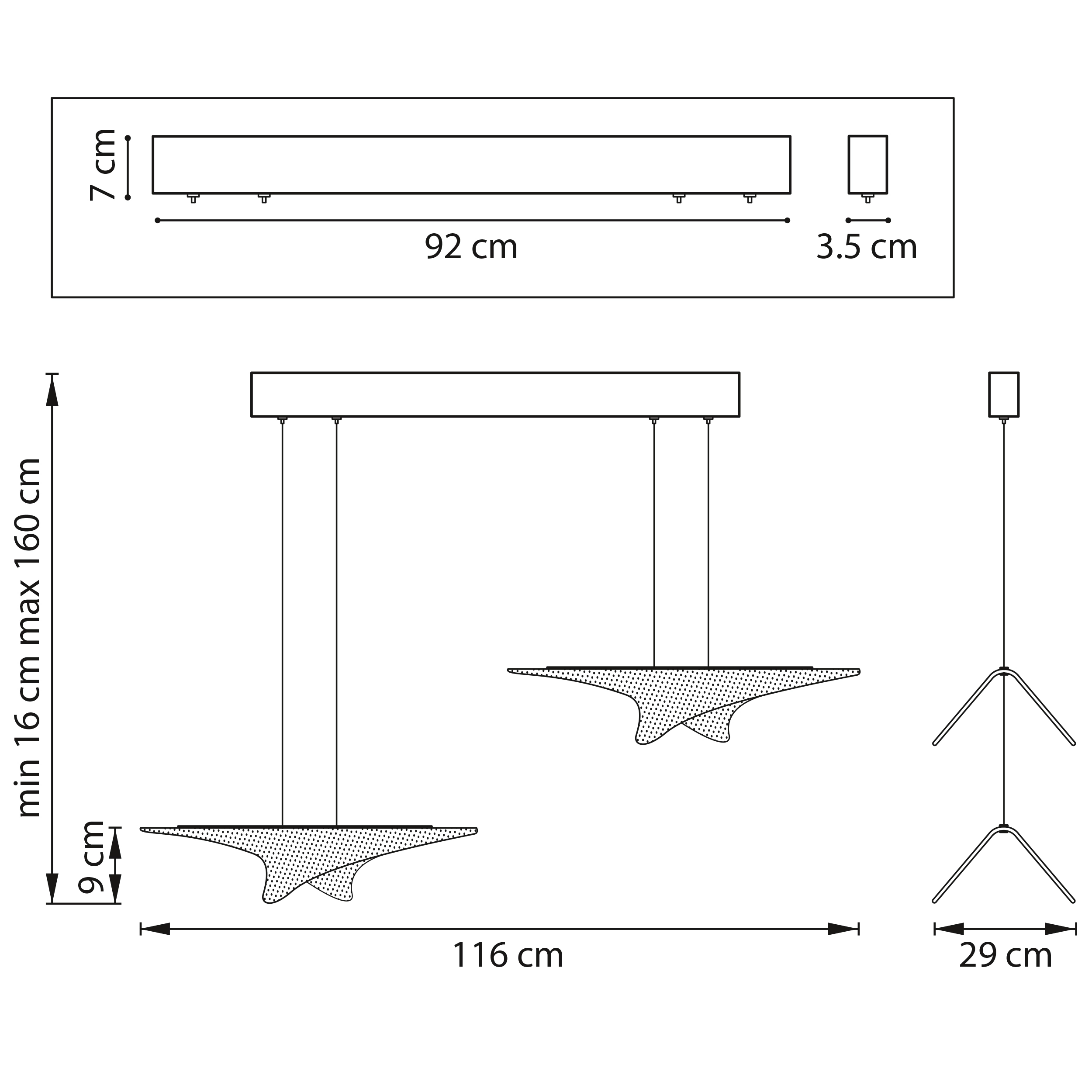 Артикул: 731323; Бренд: Lightstar; Коллекция: VARESE; Стиль: Современный; Тип светильника: Подвесная; место размещения: Жилая; Общественная; Срок службы, ч: 20 000; Тип крепления: Накладной; На планку; Степень защиты: IP20; Напряжение питания, V: 220; Общая мощность LED, W: 35; Световой поток, Lm: 3 628; Цветовая температура, K: 3000; Индекс цветопередачи: 90; Материал каркаса: металл, Металл; Материал плафона: акрил, Акрил; Цвет каркаса: золото, Золото; Цвет плафона: прозрачный, Прозрачный; Длина, мм: 1 160; Ширина, мм: 290; высота: 90; min высота: 160; max высота: 1 600; Длина потолочной чаши, мм: 920; Ширина потолочной чаши, мм: 35; Высота потолочной чаши, мм: 70; Вес, кг: 2,8; Штрихкод: 8050046567342