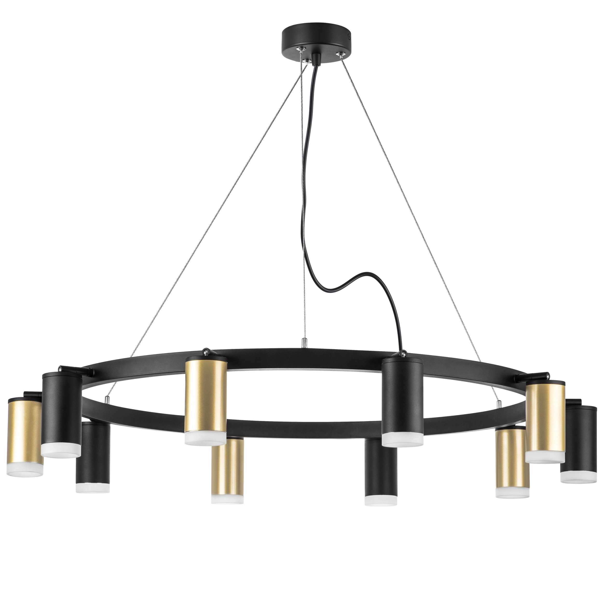 Артикул: LR0204053750; Бренд: Lightstar; Коллекция: Rullo; Стиль: High-tech; Тип светильника: Подвесная; место размещения: Жилая; Общественная; Тип крепления: Накладной; На планку; Степень защиты: IP20; Напряжение питания, V: 220; Количество ламп: 10; Тип ламп: ГЛН; LED; Тип цоколя: GU10; Мощность ламп, W: 50; Общая мощность LED, W: 60; Общая мощность, W: 500; Материал каркаса: металл, Металл; Материал плафона: Металл; Акрил; Цвет каркаса: черный, Черный; Цвет плафона: Матовый; Золото; Черный; Лампы в комплекте: Нет; высота: 146; min высота: 566; max высота: 1 266; Диаметр, мм: 1 162; Высота потолочной чаши, мм: 45; Диаметр потолочной чаши, мм: 100; Вес, кг: 5,46; Штрихкод: 8053176897976