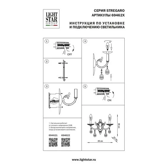 Артикул: 694622; Бренд: Lightstar; Коллекция: Stregaro; Стиль: Art Deco; место размещения: Жилая; Общественная; Тип крепления: Накладной; На планку; Степень защиты: IP20; Напряжение питания, V: 220; Количество ламп: 2; Тип ламп: ГЛН; КЛЛ; LED; Тип цоколя: E14; Мощность ламп, W: 60; Общая мощность LED, W: 12; Общая мощность, W: 120; Материал каркаса: металл, Металл; Материал плафона: металл, Металл; Цвет каркаса: золото, Золото; Цвет плафона: золото, Золото; Длина, мм: 210; Ширина, мм: 350; высота: 400; Ширина потолочной чаши, мм: 110; Высота потолочной чаши, мм: 270; Вес, кг: 1,8; Штрихкод: 8059018266214