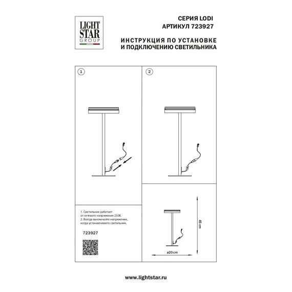 Артикул: 723927; Бренд: Lightstar; Коллекция: Lodi; Стиль: Современный; место размещения: Жилая; Общественная; Срок службы, ч: 20 000; Тип крепления: Переносная конструкция; Степень защиты: IP20; Напряжение питания, V: 220; Общая мощность LED, W: 9; Световой поток, Lm: 720; Цветовая температура, K: 3000; Индекс цветопередачи: 80; Материал каркаса: Металл; Дерево; Материал плафона: Металл; Акрил; Цвет каркаса: Дерево; Черный; Цвет плафона: Матовый; Черный; высота: 450; Диаметр, мм: 200; Высота потолочной чаши, мм: 5; Диаметр потолочной чаши, мм: 150; Вес, кг: 1,15; Штрихкод: 8053176053150