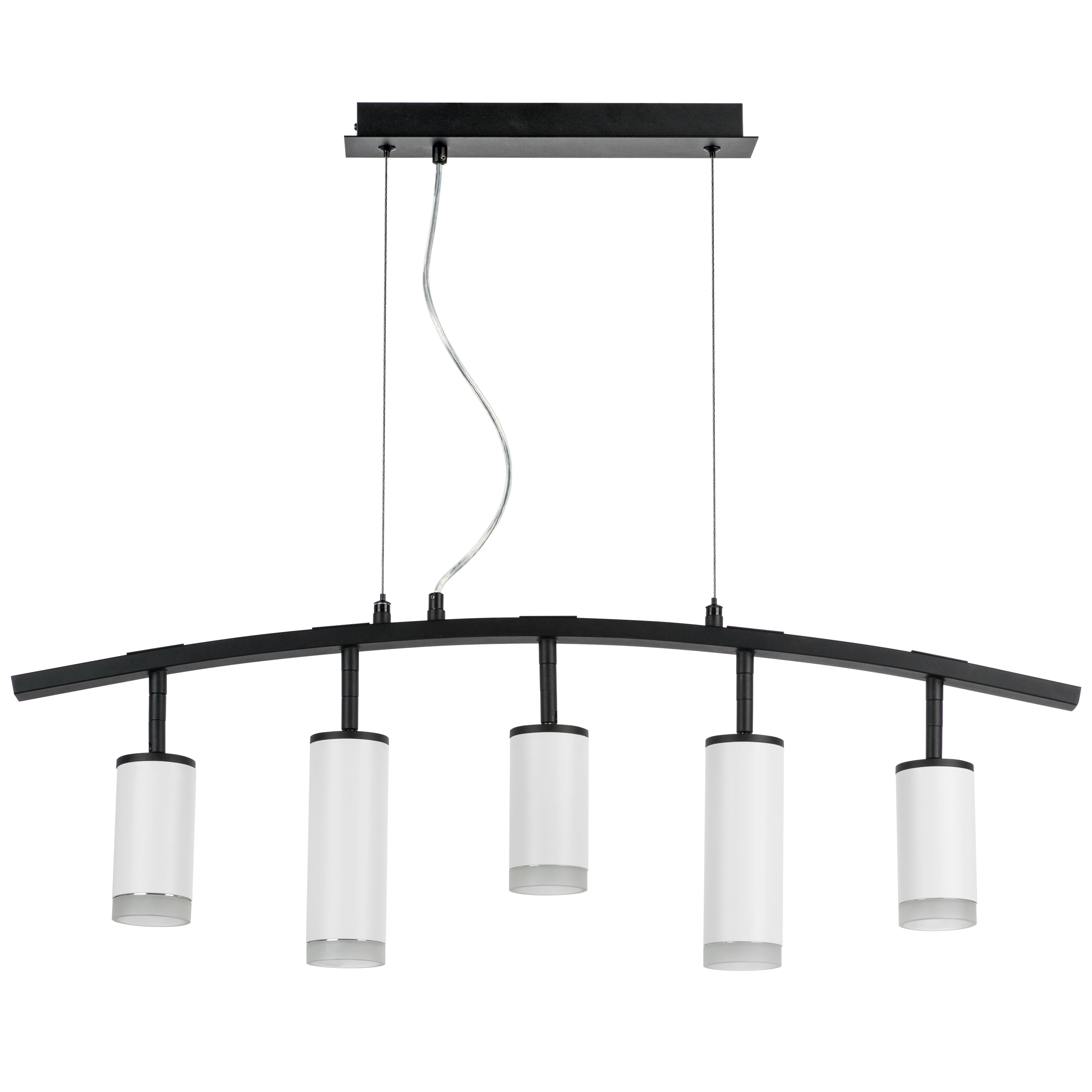 Артикул: LR7353638620; Бренд: Lightstar; Коллекция: Rullo; Стиль: High-tech; Тип светильника: Подвесная; место размещения: Жилая; Общественная; Тип крепления: Накладной; На планку; Степень защиты: IP20; Напряжение питания, V: 220; Количество ламп: 5; Тип ламп: ГЛН; LED; Тип цоколя: GU10; Мощность ламп, W: 50; Общая мощность LED, W: 30; Общая мощность, W: 250; Материал каркаса: металл, Металл; Материал плафона: Металл; Акрил; Цвет каркаса: черный, Черный; Цвет плафона: Белый; Матовый; Лампы в комплекте: Нет; Длина, мм: 840; Ширина, мм: 340; высота: 305; min высота: 395; max высота: 1 445; Длина потолочной чаши, мм: 320; Ширина потолочной чаши, мм: 70; Высота потолочной чаши, мм: 40; Вес, кг: 2,825; Штрихкод: 8053176898591