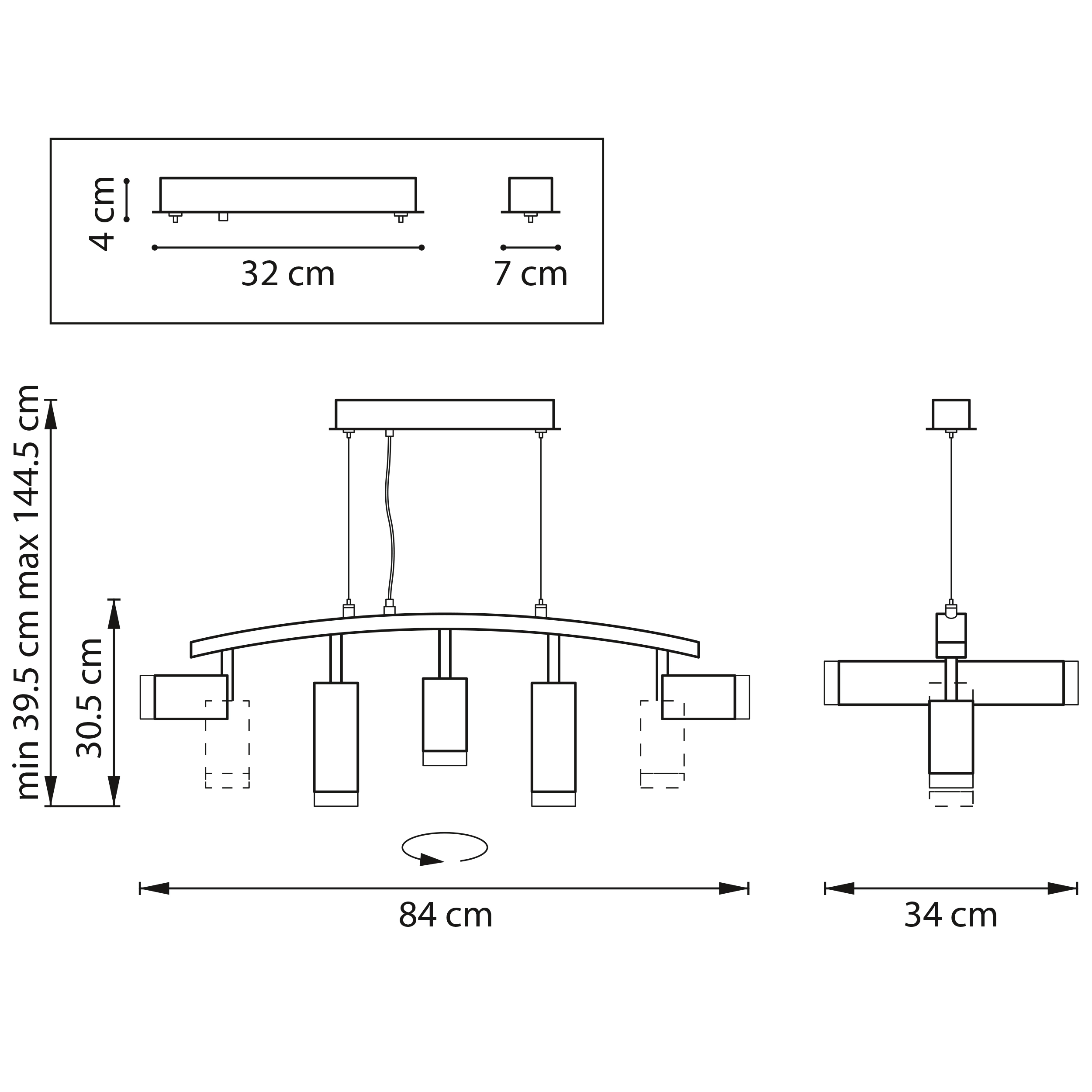 Артикул: LR7353738720; Бренд: Lightstar; Коллекция: Rullo; Стиль: High-tech; Тип светильника: Подвесная; место размещения: Жилая; Общественная; Тип крепления: Накладной; На планку; Степень защиты: IP20; Напряжение питания, V: 220; Количество ламп: 5; Тип ламп: ГЛН; LED; Тип цоколя: GU10; Мощность ламп, W: 50; Общая мощность LED, W: 30; Общая мощность, W: 250; Материал каркаса: металл, Металл; Материал плафона: Металл; Акрил; Цвет каркаса: черный, Черный; Цвет плафона: Матовый; Черный; Лампы в комплекте: Нет; Длина, мм: 840; Ширина, мм: 340; высота: 305; min высота: 395; max высота: 1 445; Длина потолочной чаши, мм: 320; Ширина потолочной чаши, мм: 70; Высота потолочной чаши, мм: 40; Вес, кг: 2,983; Штрихкод: 8053176898836