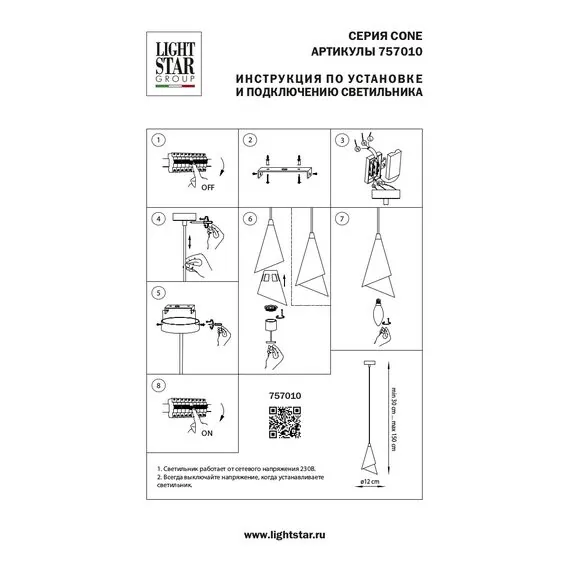 Артикул: 757010; Бренд: Lightstar; Коллекция: Cone; Стиль: High-tech; Тип светильника: Подвесная; место размещения: Жилая; Общественная; Тип крепления: Накладной; На планку; Степень защиты: IP20; Напряжение питания, V: 220; Количество ламп: 1; Тип ламп: ГЛН; КЛЛ; LED; Тип цоколя: E14; Мощность ламп, W: 40; Общая мощность LED, W: 6; Общая мощность, W: 40; Материал каркаса: металл, Металл; Материал плафона: металл, Металл; Цвет каркаса: Матовый Черный; Цвет плафона: Золото; Матовый Черный; высота: 235; min высота: 300; max высота: 1 790; Диаметр, мм: 120; Высота потолочной чаши, мм: 30; Диаметр потолочной чаши, мм: 80; Вес, кг: 0,555; Штрихкод: 8052204341887