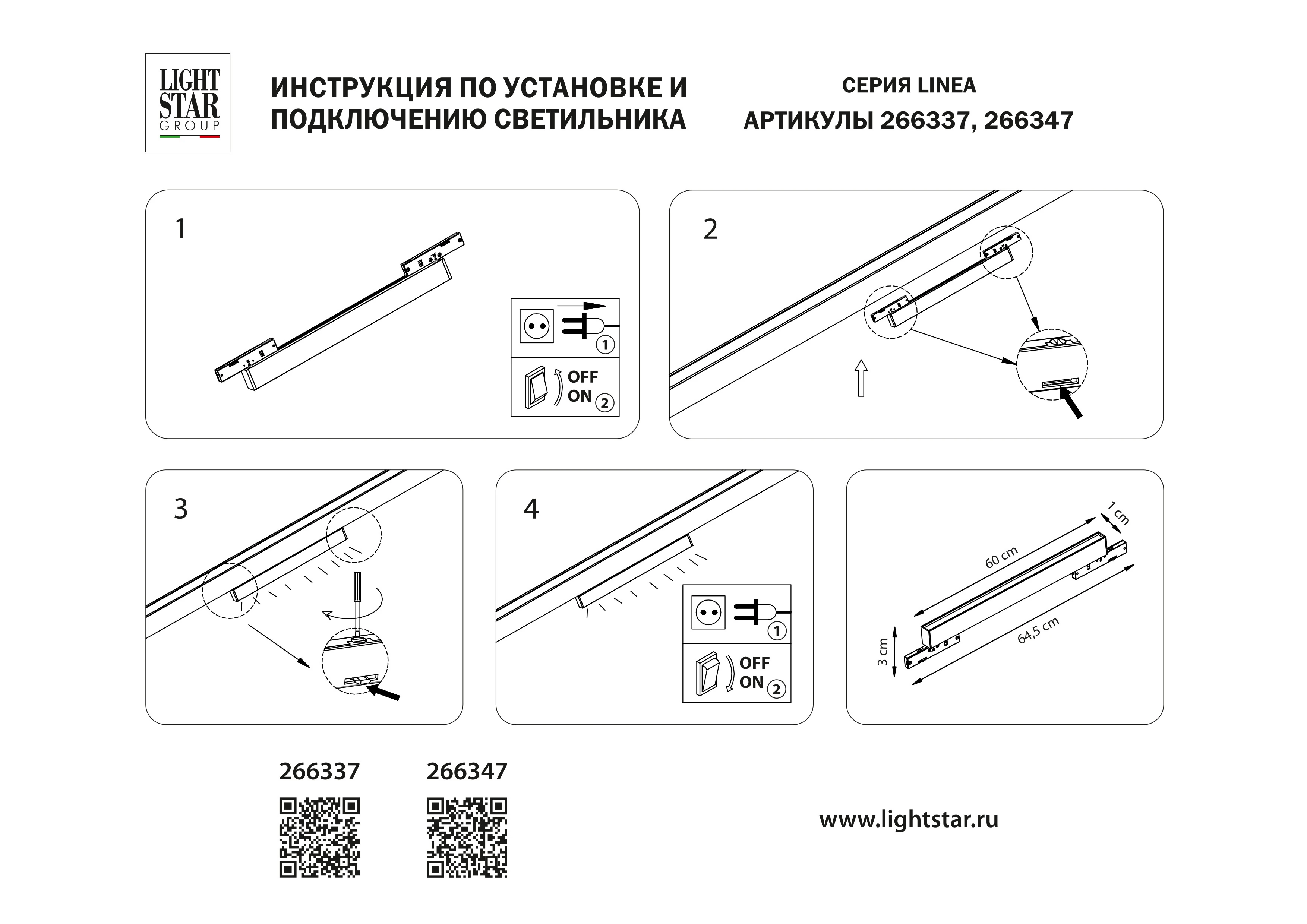 Артикул: 266347; Бренд: Lightstar; Коллекция: Linea; Стиль: Minimalism; Тип светильника: Трек LINEA; место размещения: Жилая/общественная; Срок службы, ч: 20 000; Степень защиты: IP20; Напряжение питания, V: 24; Угол рассеивания, град: 100; Общая мощность LED, W: 16; Световой поток, Lm: 1 300; Цветовая температура, K: 4000; Индекс цветопередачи: 80; Материал каркаса: металл, Металл; Материал плафона: Металл/акрил; Цвет каркаса: черный, Черный; Цвет плафона: Черный/матовый белый; Длина, мм: 600; Ширина, мм: 10; высота: 30; Длина потолочной чаши, мм: 645; Вес, кг: 0,175; Штрихкод: 8053176003377