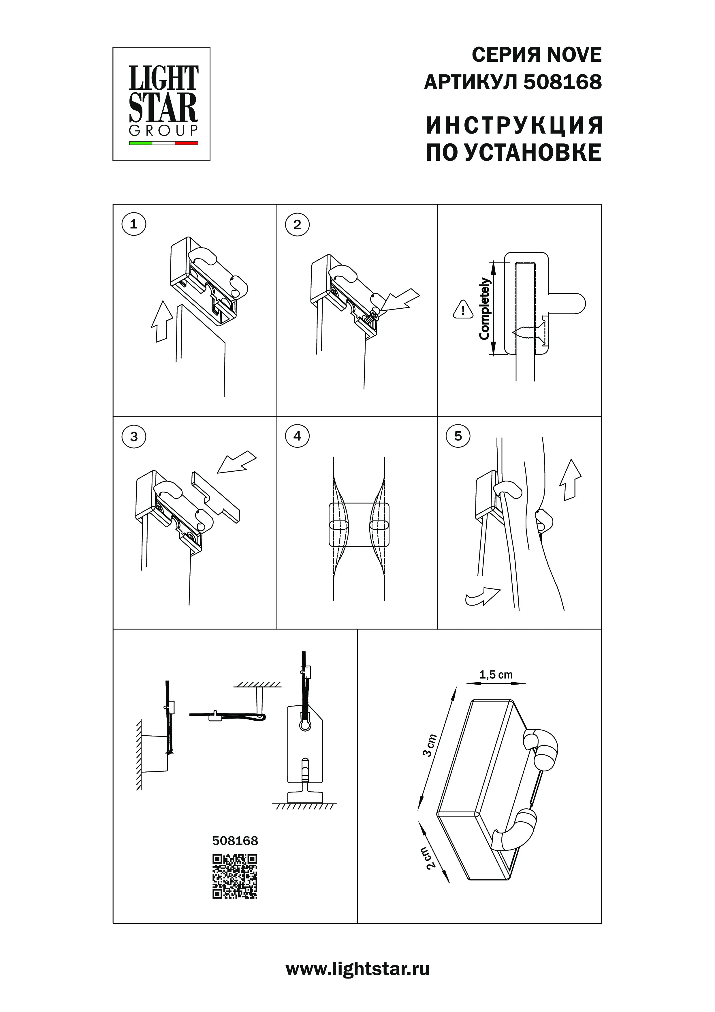 Артикул: 508168; Бренд: Lightstar; Коллекция: Nove; Стиль: Loft; Тип светильника: Тканевый трек NOVE; Материал каркаса: пластик, Пластик; Цвет каркаса: черный, Черный; Длина, мм: 30; Ширина, мм: 15; высота: 20; Вес, кг: 0,004; Штрихкод: 8053176004664