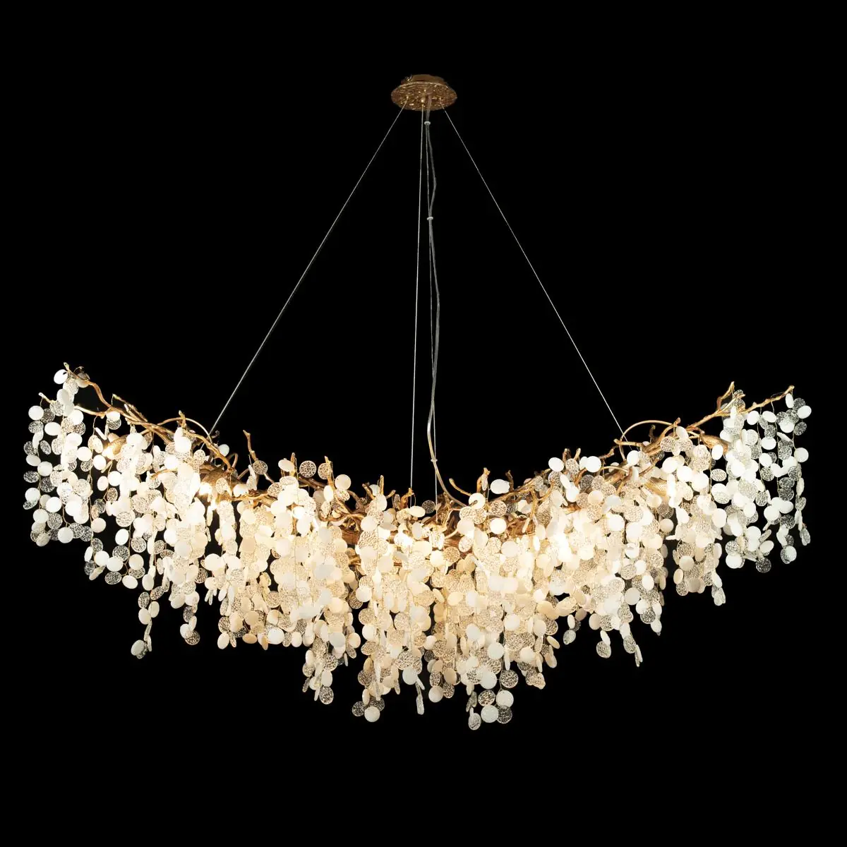 Артикул: 10066/1500 GB; Бренд: Loft IT; Коллекция: Fairytree; Стиль: Art Deco; товарная группа: Люстры - Подвесные люстры; место размещения: Спальня, Гостиная, Кафе и ресторан, Банкетный зал; Форма: Фигурный; Тип крепления: На планку - На потолок; Степень защиты: IP20; Натяжные потолки: Да; Количество ламп: 15; Тип цоколя: G9, лампы накаливания, возможность использование LED; Напряжение лампы, V: 220-240V; Материал каркаса: Медь, хрусталь; Цвет каркаса: Темное золото; Гарантия, мес: 12; Длина, мм: 1500; Ширина, мм: 700; высота: 650; min высота: 2150; max высота: 1,5; Высота потолочной чаши, мм: 30; Диаметр потолочной чаши, мм: 100; Отступ от стены, мм: 24,8; Вес, кг: 880; Вес упаковки, кг: 32; Длина упаковки, см: 163; Ширина упаковки, см: 83; Высота упаковки, см: 46; Объем упаковки, м3: 0.6291; Штрихкод: 6961136023728