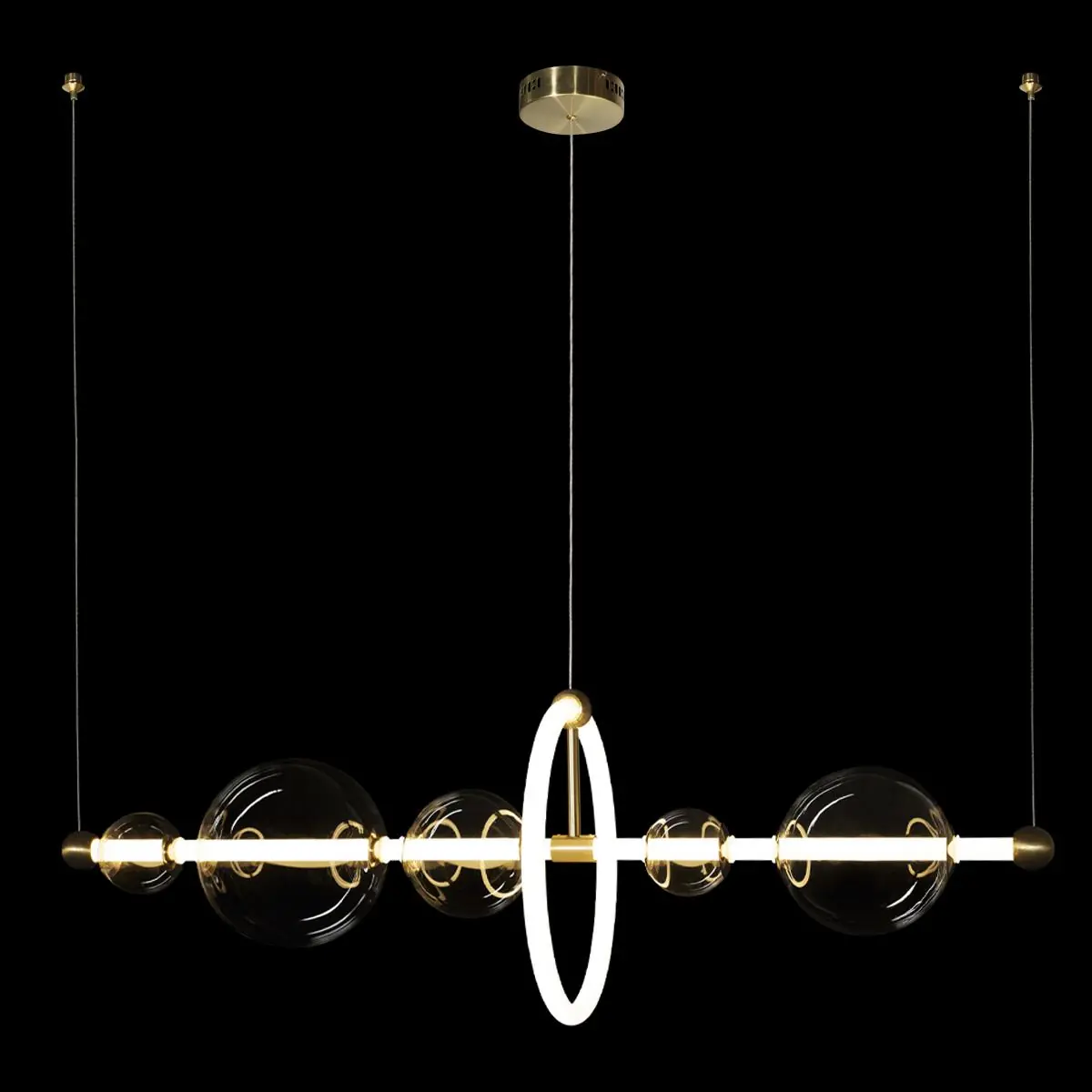Артикул: 10126/900; Бренд: Loft IT; Коллекция: Alpha; Стиль: Modern; товарная группа: Светильники - Подвесные светильники; место размещения: Спальня, Гостиная, Кухня, Прихожая, Детская, Кафе и ресторан; Форма: Фигурный; Тип крепления: На планку - На потолок; Степень защиты: IP20; Площадь освещения, м2: 18; Натяжные потолки: Да; Количество ламп: 2; Тип цоколя: LED; Мощность ламп, W: 36; Общая мощность, W: 36; Напряжение лампы, V: 220-240V; Световой поток, Lm: 5400; Индекс цветопередачи: 3000; Материал каркаса: Металл, акрил; Материал плафона: стекло, Стекло; Цвет каркаса: Белый, золото; Цвет плафона: прозрачный, Прозрачный; Гарантия, мес: 24; Длина, мм: 900; высота: 300; min высота: 2190; max высота: 2; Высота потолочной чаши, мм: 40; Диаметр потолочной чаши, мм: 120; Отступ от стены, мм: 2; Вес, кг: 340; Вес упаковки, кг: 3.35; Длина упаковки, см: 98; Ширина упаковки, см: 33; Высота упаковки, см: 38; Объем упаковки, м3: 0.1229; Штрихкод: 6961136025234