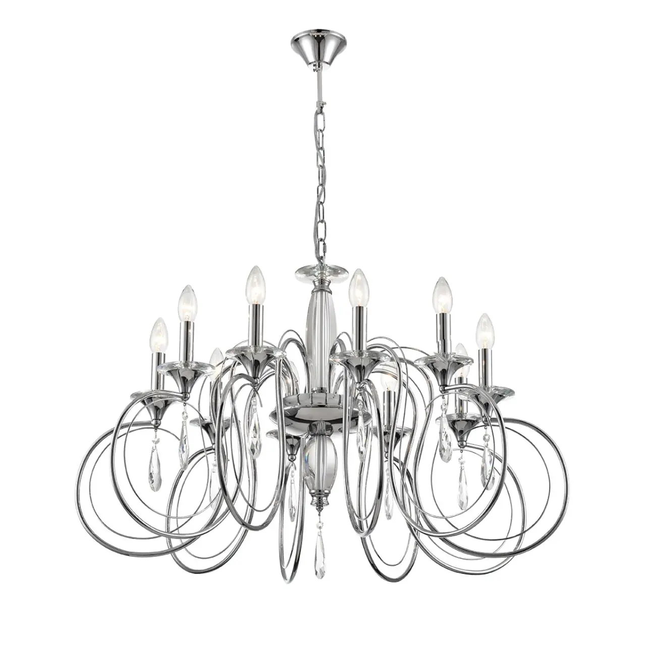 Артикул: 8032/10; 0047681; Бренд: Lumion; Коллекция: CLASSI; Линия: LAOKA; Стиль: Classic; Назначение: Люстра подвесная; место размещения: в гостиную; в спальню; Тип крепления: крепление на крюк; Степень защиты: IP20; Площадь освещения, м2: 20; Напряжение питания, V: 220; Класс защиты: 1; Класс электро-безопасности: I; Температурный режим: -5...+40; Количество ламп: 10; Тип ламп: накаливания, Накаливания; Тип цоколя: E14; Мощность ламп, W: 10*40; Max мощность лампы, W: 40; Общая мощность, W: 400; Материал каркаса: металл, Металл; Поверхность каркаса: глянцевый; Цвет: хром; Цвет каркаса: хром, Хром; Гарантия, мес: 30; высота: 1100; Диаметр, мм: 985; Вес, кг: 9,150; Вес упаковки, кг: 0,937; Длина упаковки, см: 48; Ширина упаковки, см: 46; Высота упаковки, см: 28; Объем упаковки, м3: 0,06182; Штрихкод: 4690344147590