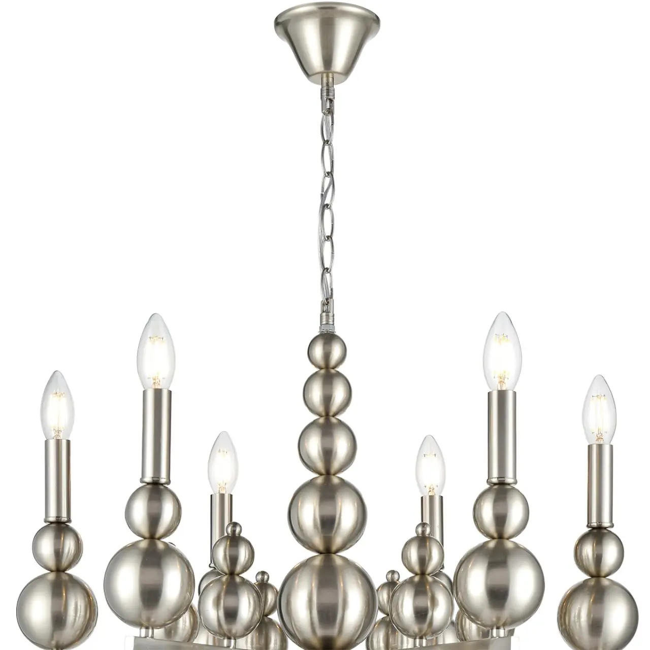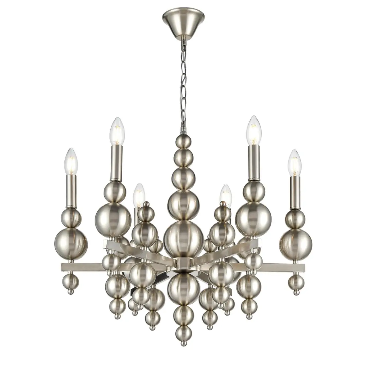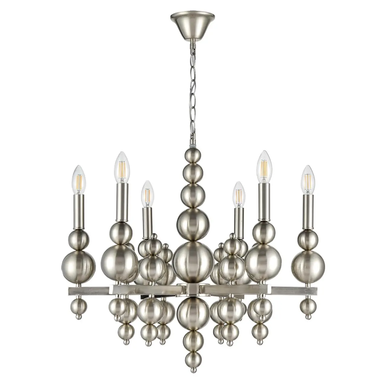 Артикул: 8107/6; 0047872; Бренд: Lumion; Коллекция: MODERNI; Линия: NANA; Стиль: Neo Classic; Назначение: Люстра; место размещения: в гостиную; в спальню; Тип крепления: крепление на крюк; Степень защиты: IP20; Площадь освещения, м2: 12; Напряжение питания, V: 220; Класс защиты: 1; Класс электро-безопасности: I; Температурный режим: -5...+40; Количество ламп: 6; Тип ламп: накаливания, Накаливания; Тип цоколя: E14; Мощность ламп, W: 6*40; Max мощность лампы, W: 40; Общая мощность, W: 24; Материал каркаса: металл, Металл; Поверхность каркаса: глянцевый; Цвет: никель; Цвет каркаса: стальной; серебристый; Гарантия, мес: 30; высота: 940; Диаметр, мм: 620; Вес, кг: 4,620; Вес упаковки, кг: 1,700; Длина упаковки, см: 53; Ширина упаковки, см: 40; Высота упаковки, см: 15; Объем упаковки, м3: 0,03180; Штрихкод: 4690344149327