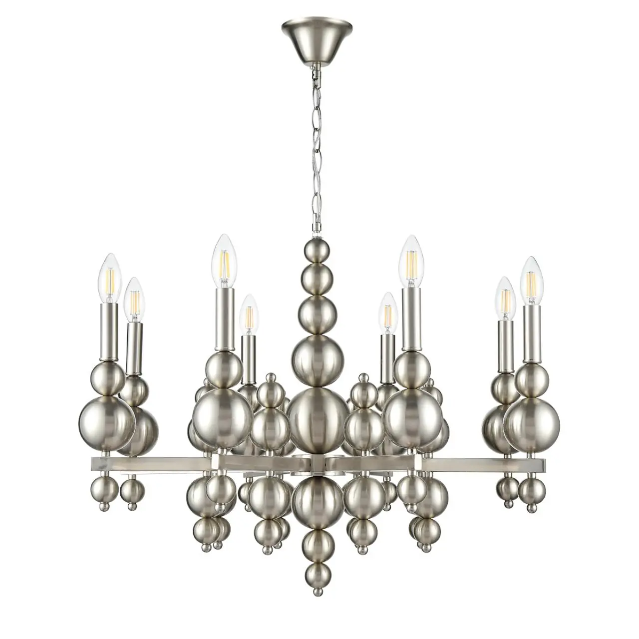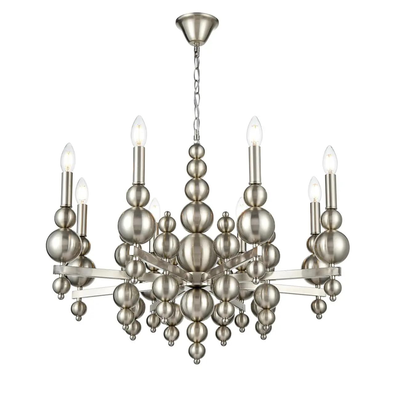 Артикул: 8107/8; 0047873; Бренд: Lumion; Коллекция: MODERNI; Линия: NANA; Стиль: Neo Classic; Назначение: Люстра; место размещения: в гостиную; в спальню; Тип крепления: крепление на крюк; Степень защиты: IP20; Площадь освещения, м2: 16; Напряжение питания, V: 220; Класс защиты: 1; Класс электро-безопасности: I; Температурный режим: -5...+40; Количество ламп: 8; Тип ламп: накаливания, Накаливания; Тип цоколя: E14; Мощность ламп, W: 8*40; Max мощность лампы, W: 40; Общая мощность, W: 320; Материал каркаса: металл, Металл; Поверхность каркаса: глянцевый; Цвет: никель; Цвет каркаса: стальной; серебристый; Гарантия, мес: 30; высота: 940; Диаметр, мм: 720; Вес, кг: 5,980; Вес упаковки, кг: 3,210; Длина упаковки, см: 53; Ширина упаковки, см: 40; Высота упаковки, см: 17; Объем упаковки, м3: 0,03604; Штрихкод: 4690344149334
