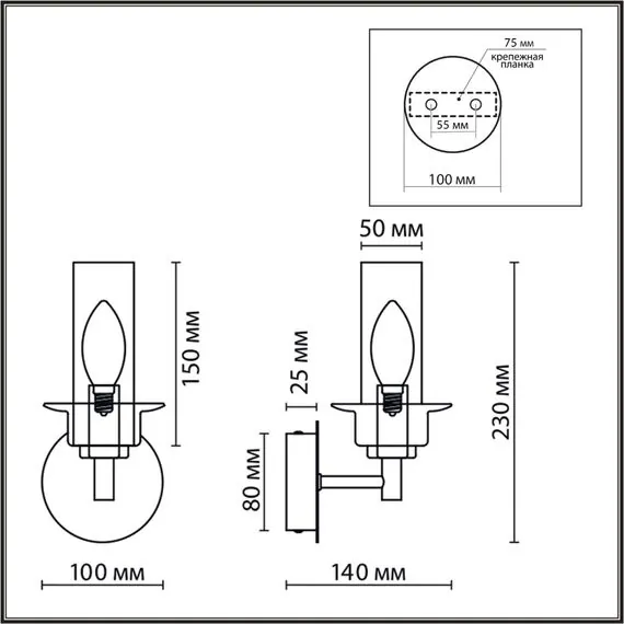 Артикул: 6554/1W; 0047477; Бренд: Lumion; Коллекция: CLASSI; Линия: MADONNA; Стиль: Classic; Назначение: Бра; место размещения: на кухню; в гостиную; в спальню; в прихожую; на лестницу; Тип крепления: крепление на планке; Степень защиты: IP20; Площадь освещения, м2: 2; Напряжение питания, V: 220; Класс защиты: 1; Класс электро-безопасности: I; Температурный режим: 0...+40; Количество ламп: 1; Тип ламп: накаливания, Накаливания; Тип цоколя: E14; Мощность ламп, W: 1*40; Max мощность лампы, W: 40; Общая мощность, W: 40; Материал каркаса: металл, Металл; Материал плафона: стекло, Стекло; Поверхность каркаса: полуматовый; Поверхность плафона: глянцевый; Цвет: бронза, коньячный; Цвет каркаса: бронзовый, Бронзовый; Цвет плафона: коричневый, Коричневый; Гарантия, мес: 30; Длина, мм: 100; высота: 230; Отступ от стены, мм: 140; Вес, кг: 0,550; Вес упаковки, кг: 2,084; Длина упаковки, см: 44; Ширина упаковки, см: 43; Высота упаковки, см: 22; Объем упаковки, м3: 0,00100; Штрихкод: 4690344143752